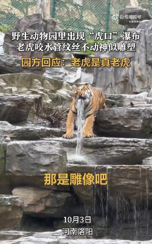 “丢人丢大了!”10月3日,河南洛阳,一游客到动物园参观,走到老虎展区时,发现里面有一尊老虎“雕像”正在喷水,正当游客感慨这“雕像”栩栩如生时,“雕像”竟然动了起来,原来,那竟是一头真的老虎,水管卡在了牙齿上!网友:这回它在动物园出名了。 国庆假期已经开始,不少人都规划好了行程,每天不是在旅游,就是在旅游的路上,但假期出行一定要注意安全,保管好随身物品。 这天,栾川野生动物园人山人海,大量游客前来观光,而在老虎展区里,却发生了一件令人啼笑皆非的事情。 只见一只老虎咬着水管一动不动,水管里还有水不断地喷出,周围的游客纷纷驻足,赞叹这“雕像”做得真逼真。 然而就在下一秒,“雕像”竟然动了起来,原来,这竟然是一头真老虎!周围不断有老虎过去查看情况,不知道是想帮它还是在嘲笑它。 事后,工作人员进行了解释,当天那只老虎咬水管玩,结果卡在了牙缝中,结果被很多人误以为是雕像,最终将水管取了出来,老虎也没有受伤。 网友看后表示,这不解释一下还真说不清,看来猫科动物都调皮是真的,就连百兽之王也会出洋相! 信息来源:《老虎咬住水管宛如瀑布雕塑 网友:看图猜地名 打一旅游景点》生活帮