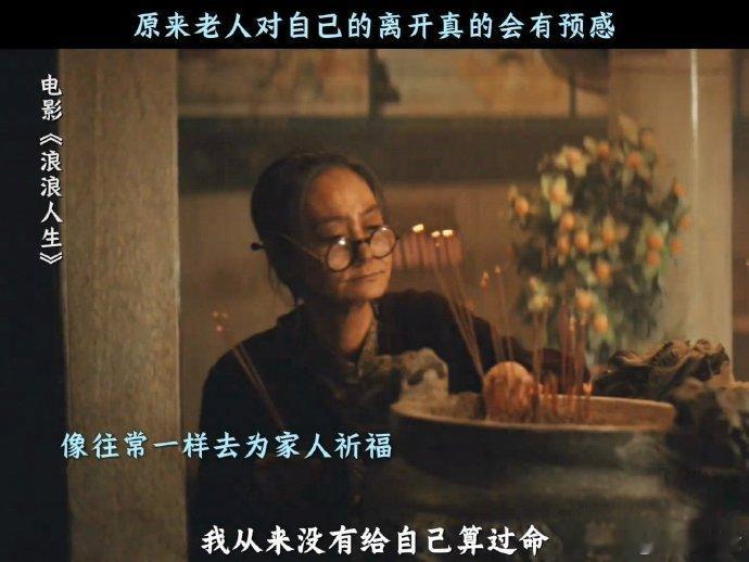家人才不舍得你一命换一命 电影《浪浪人生》中,阿太为黄荣发祈福的画面太动人!一生信神明的她,把所有虔诚都给了家人,孙子做手术时,她在庙里跪了一天,连台风 “鲸落” 来临都不顾,只因她觉得,能护家人平安,比自己的命更重要。