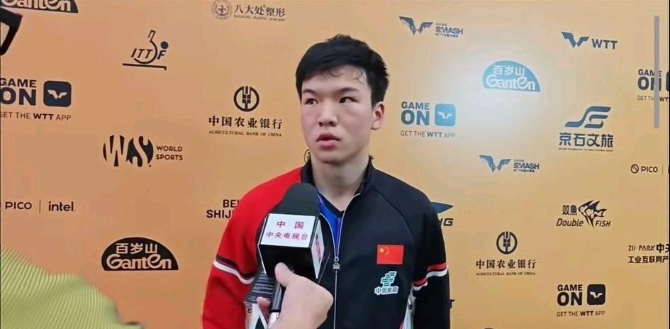 这孩子的大场面经历还是太少了! 场上打球倒是越来越淡定,即使落后也是不急不躁的,一分一分咬,雨果想要赢他也要想尽各种办法,大开大合的球还能占据上风。 就这么个国乒小将,比赛结束后,不管是赛场内的现场接受采访,还是记者通道区的采访,感觉这孩子还是太嫩, 像小石头经历的大场面多了以后,现在已经好多了。 但向鹏的确还不行,感觉这孩子面对镜头和话筒还是紧张,有些话还是没能说到点子上去,这次的“黑马”陈俊崧都比他好很多啊! 还得继续加油!争取混到和王楚钦及孙颖莎那样,有一个新闻官配在身边,那时候就真的是出息了。 有意思的是:当央视记者问他如何展望下一场的半决赛时,老实巴交的向鹏居然说希望头哥(王楚钦)能赢。 未战就先“恭喜”人家头哥?向鹏,你确定头哥听到后不会笑话你?呵呵呵! 你想头哥赢,问过陈指导吗?还有坐在看台上的王励勤,他同意了吗?哈哈!