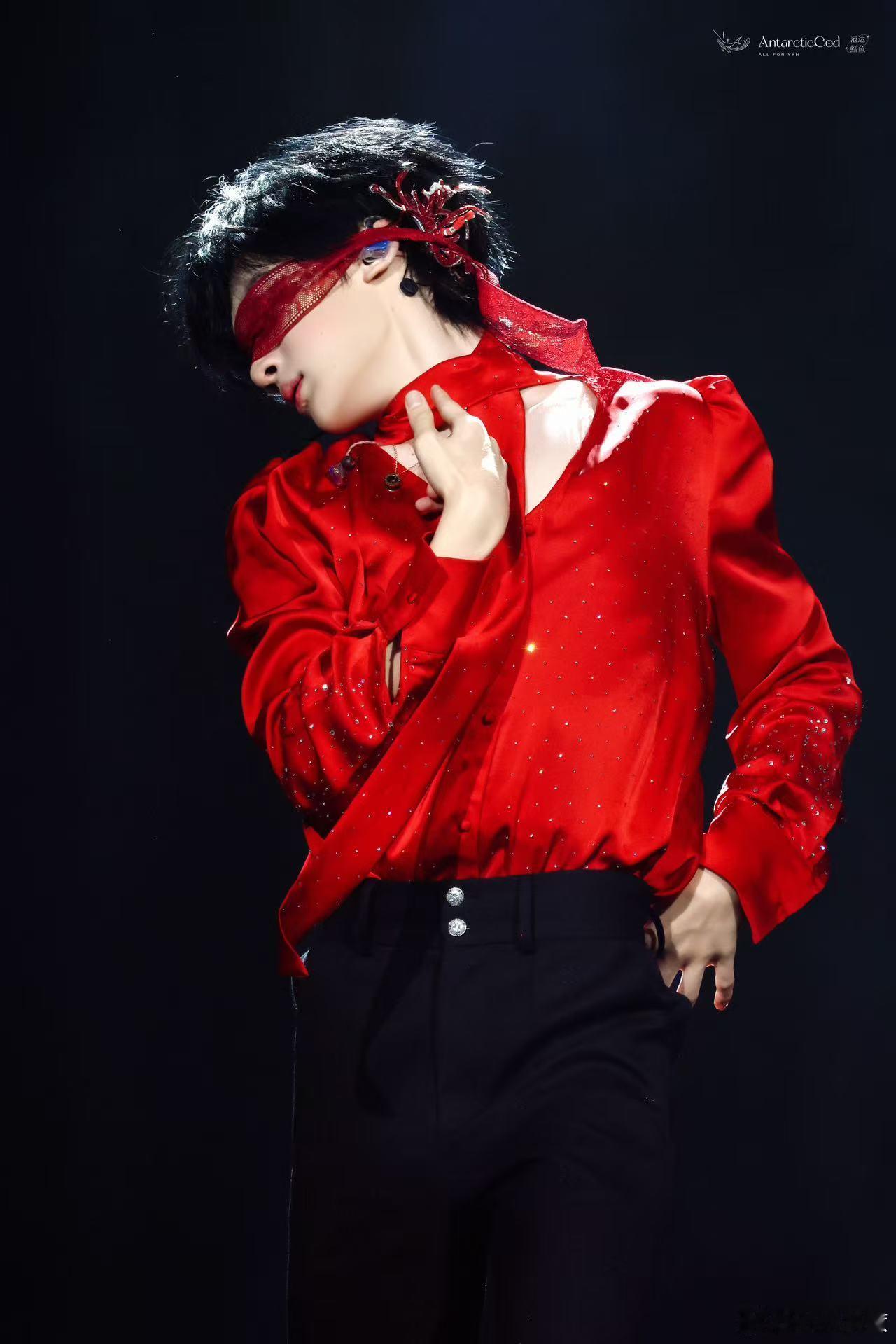 余宇涵红色蕾丝蒙眼杀 这身红色蕾丝蒙眼装,余宇涵简直帅得令人心动,充满了戏剧感和力量感,完美展现了他的独特魅力。