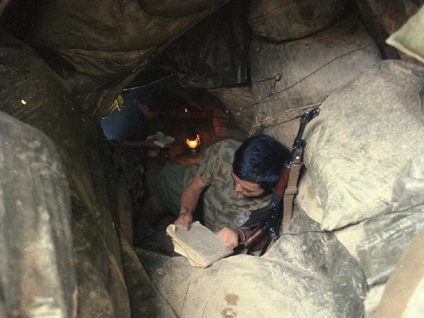 位于中国云南省文山州麻栗坡县天保镇驻地船头村以西,中越边境口岸船头西南5千米处的中越边界骑线点上,横亘于中越边境12号至13号界桩之间最高点。主峰海拔1422.2米,扼越南西北部河江市通向中国云南省的咽喉,战略位置十分重要。1979年,中国军队完成中越边境自卫还击作战以后,越南派兵侵占老山,依托复杂的地形,修筑了大量坑道、堑壕、掩体、藏兵洞,多道铁丝网、陷阱和防步兵壕。“老山之战”对长达10年之久的中越战争,具有里程碑式的意义。收复老山之后,南京军区、济南军区、兰州军区、北京军区、沈阳军区、成都军区等都分别在老山战场轮战。战地记者刘铁生拍摄。