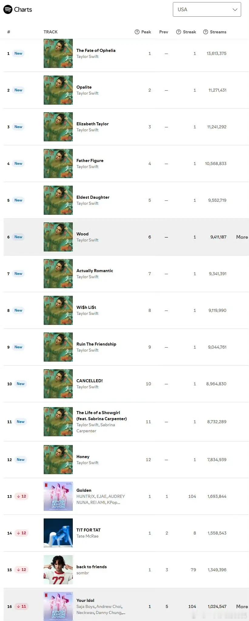 霉霉新专辑声破天首日流媒2.5e🔥全球前12占12!美区前12占12!世女一