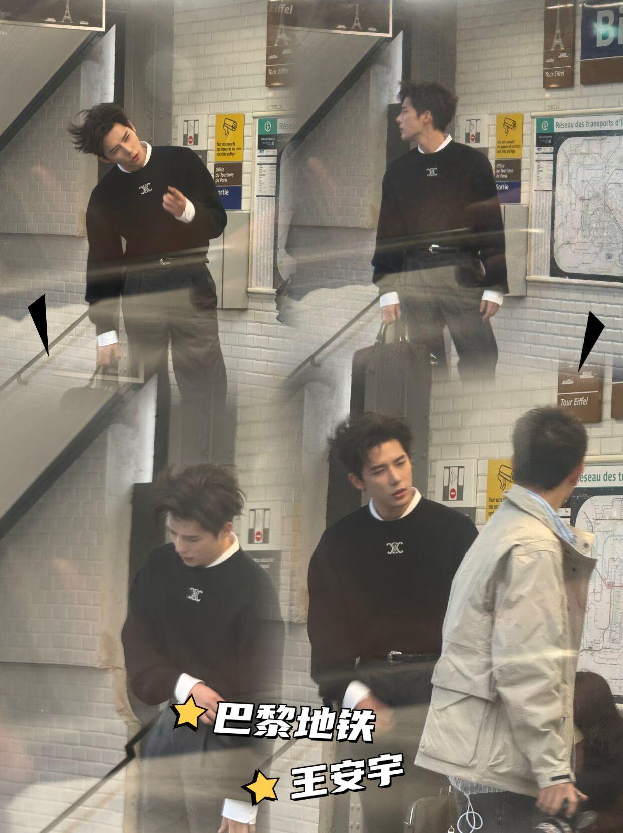 王安宇的头发被风吹成这样了!网友发文透露,在巴黎坐地铁时遇见明星了,王安宇正在拍写真,他穿着品牌方的衣服,拿着包正在摆造型,国外地铁站哪里来的风,头发都吹飞起来了,不过本人依然十分帅气,那么多人看着也不尴尬。这毛衣搭西装,感觉不太搭啊,全靠颜值在撑着