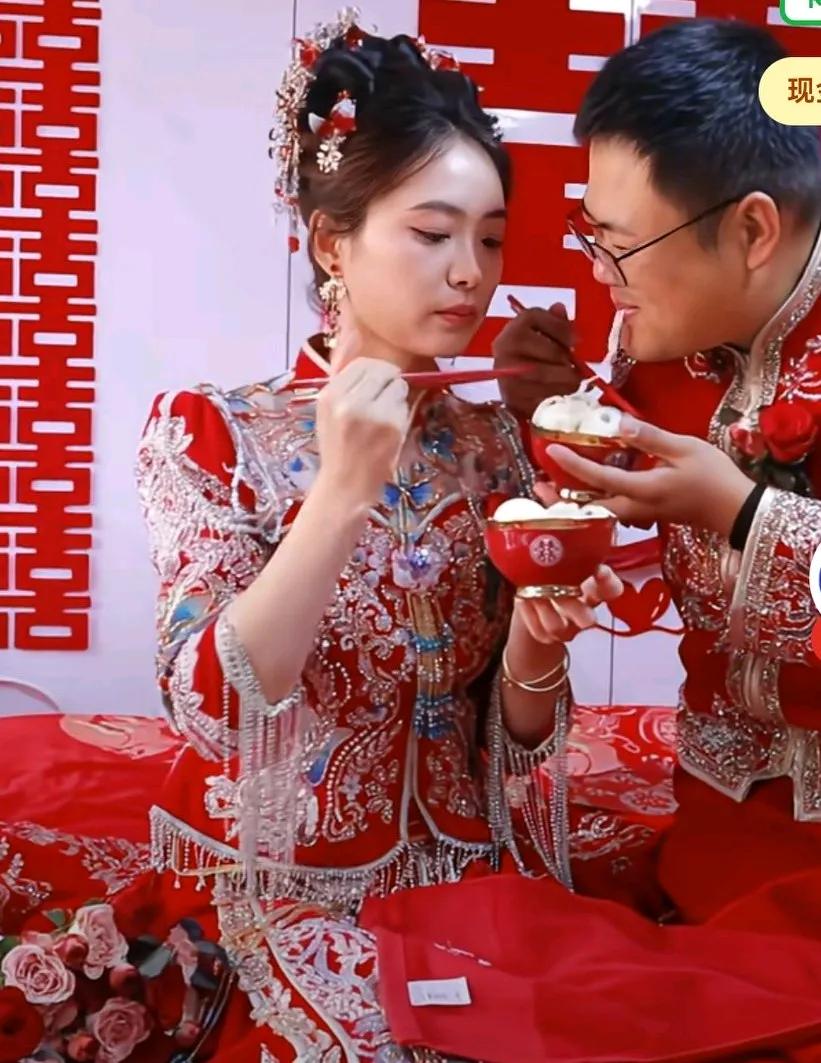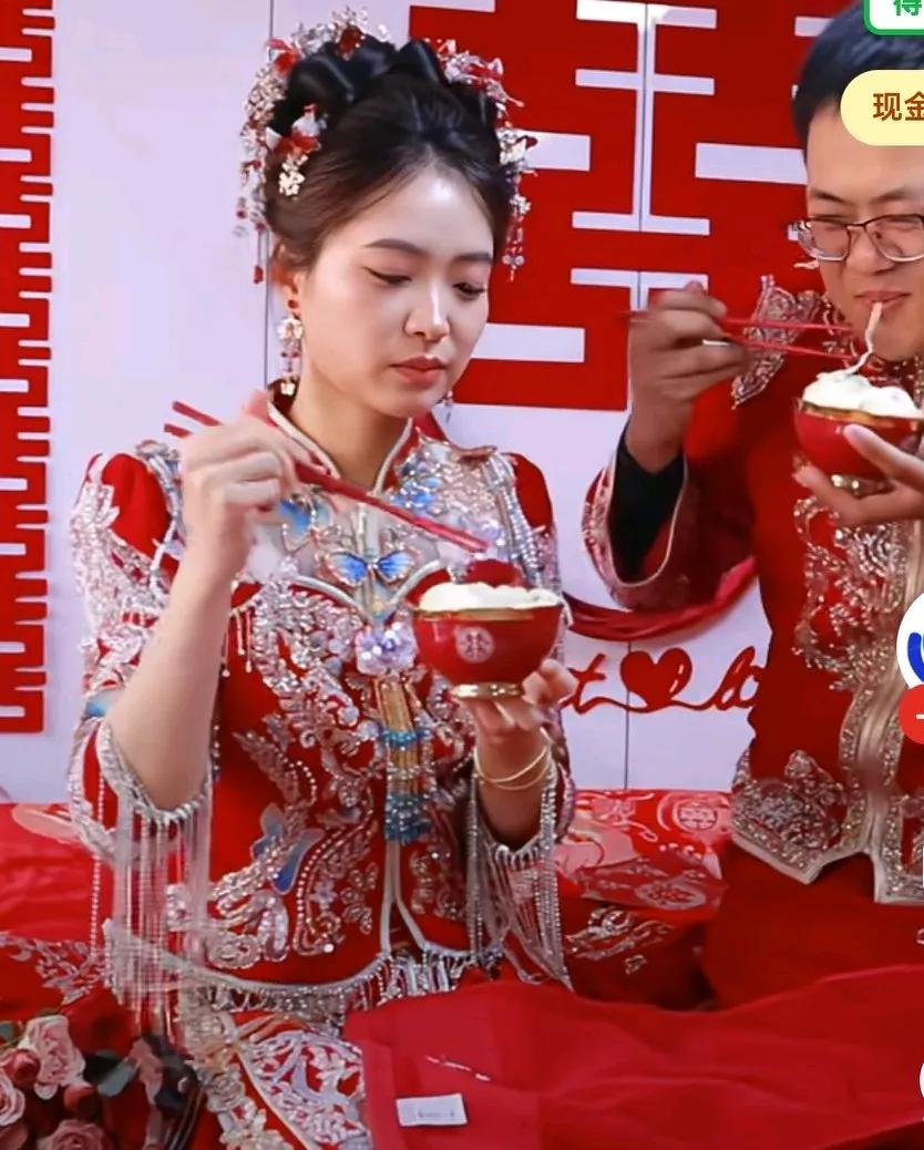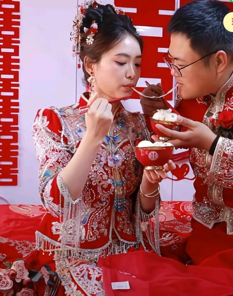 新人结婚时,两人同吃一根面,四姨说不要动,不要动,谁吃的多谁当家, 听到谁吃多谁当家时, 新娘立马夹断面条都给新郎吃了, 新郎笑呵呵的把一根面条都吃掉了。 新娘心想,面子是给他了, 他把这一碗面条都吃了, 也不一定能当得了这个家。 网友说,看新娘的面部表情好像不太高兴, 是不是不爱新郎呀, 难道是到了年纪, 为了应付父母才结婚的吗? 还是很讨厌司仪这个介绍方式。