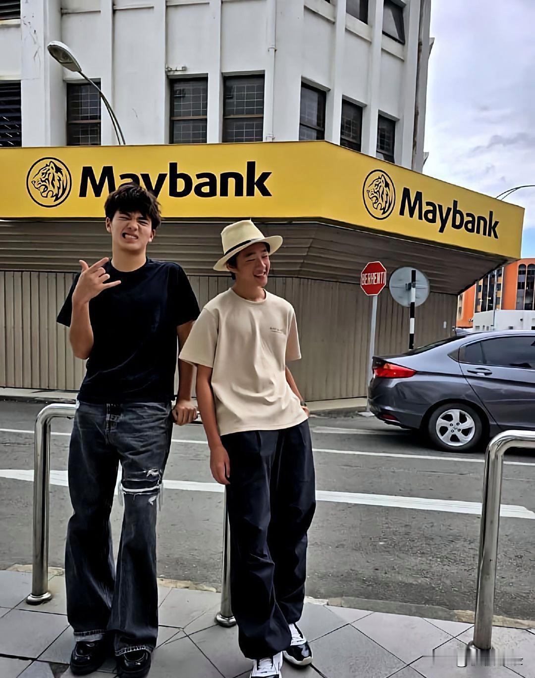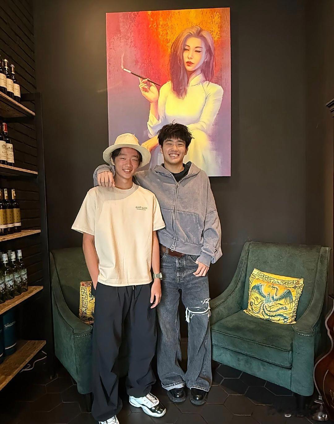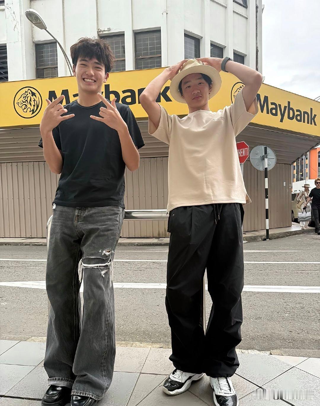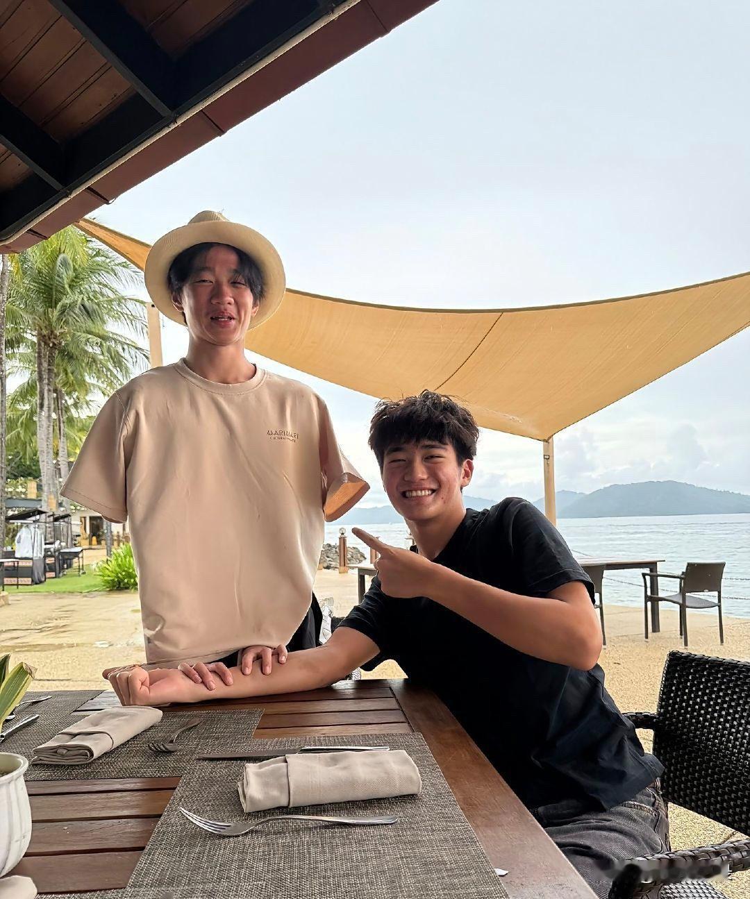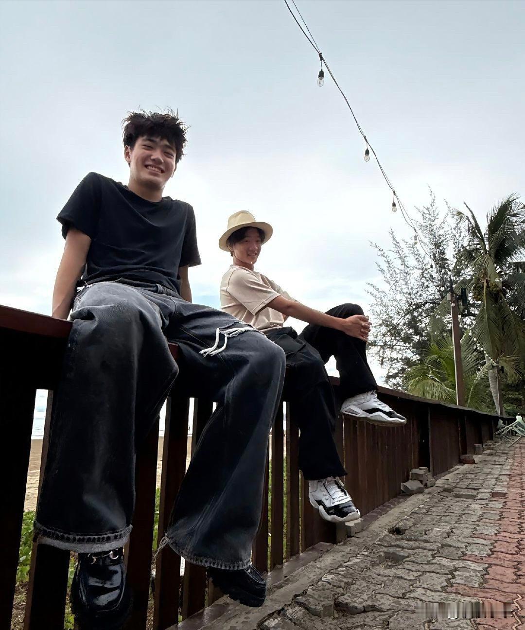 曹格儿子和杨威儿子一起出去旅游,两个小伙子才16岁左右,个子已经长得很高,而且很会穿衣打扮,看起来酷酷的,少年气息满满![得意][得意]