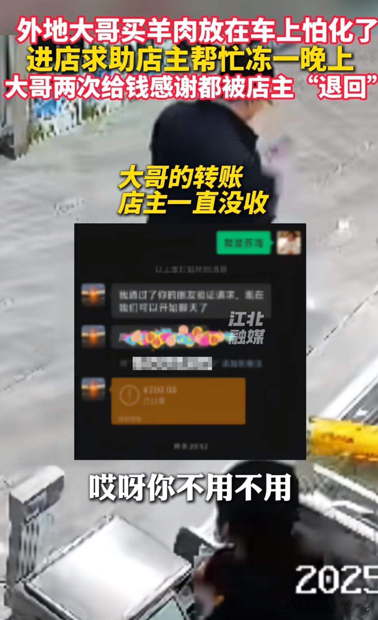 “活该老板发财!”一男子去内蒙古玩,买了只羊怕放车里坏了,找路边店家借冰柜。老板特痛快,不仅答应了还专门收拾了冰柜。事后给钱死活不要,就说“举手之劳”。 结果你猜怎么着?这游客把这事写上网,小店直接火了!说实话,这种不图回报的善意,反而赢得了更多人的心。 要我说啊,这就是“好人有好报”的现实版。善良就像存钱,你付出的每一分,最后都会连本带利还给你。现在的人多精明啊,可恰恰是这种不算计的真诚最打动人。 所以说,别小看任何一次善举。你只管善良,老天自有安排。