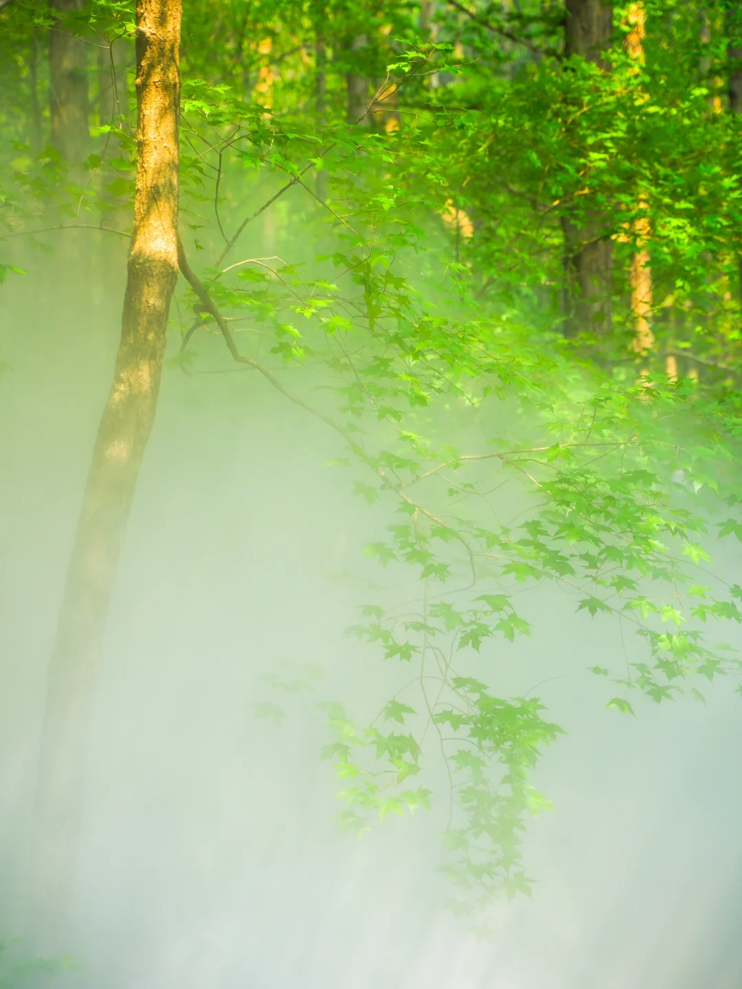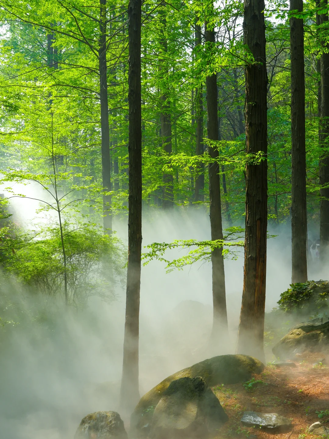 阳光形成丁达尔效应,一切宛如古画中的仙境