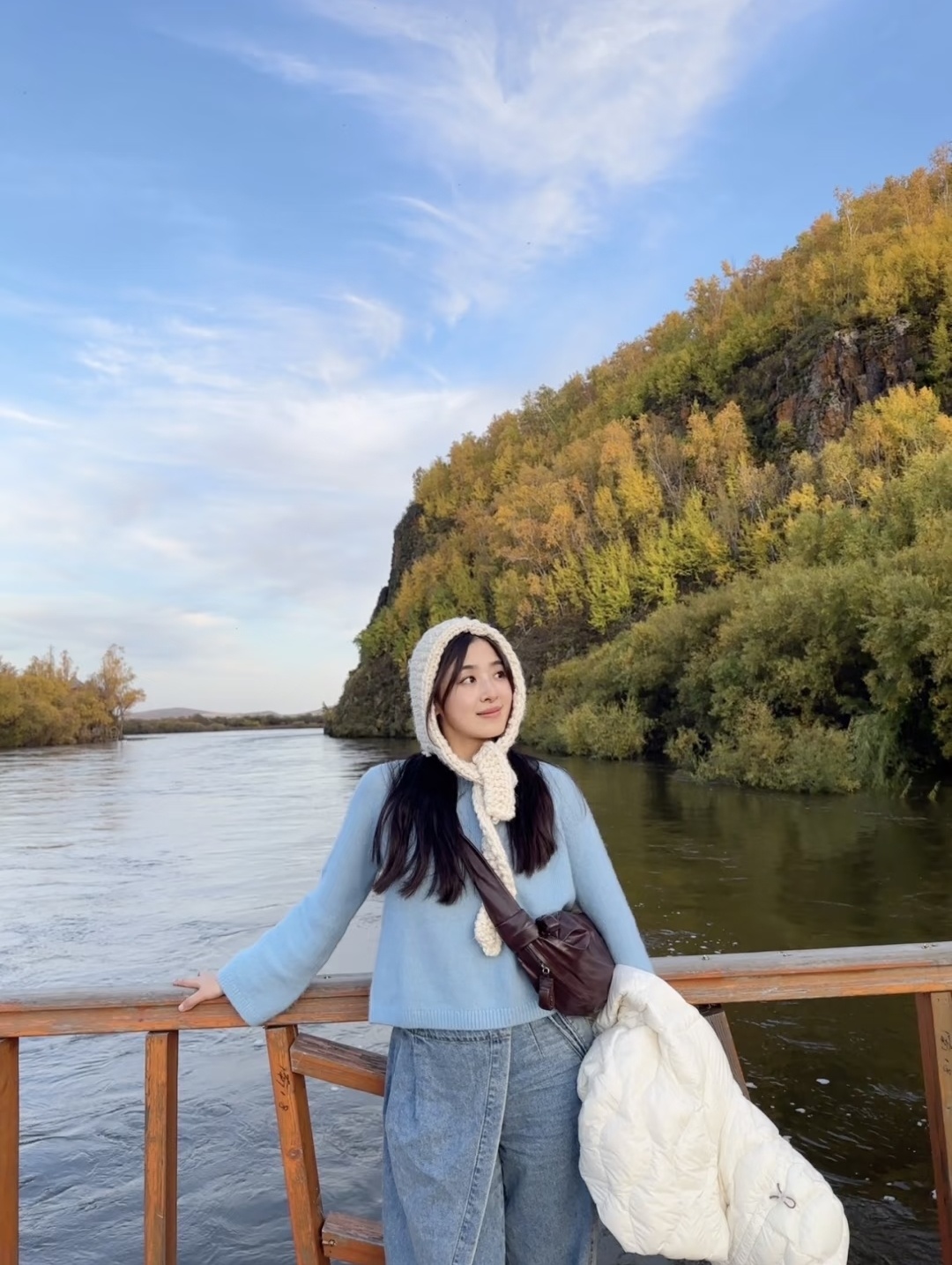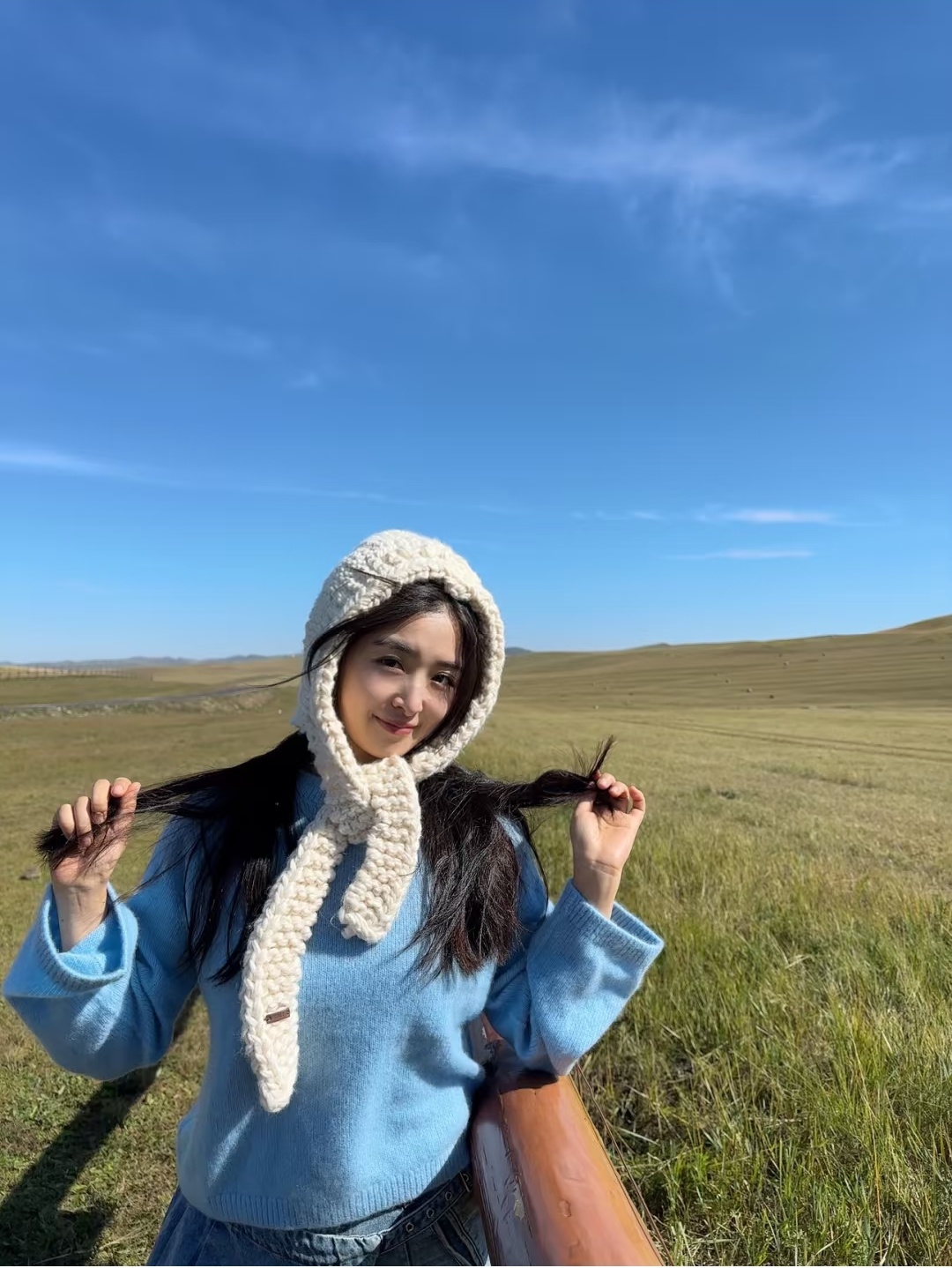 张含韵的旅游照,真好看啊~她还提醒大家别独自前往,一个人上不去,把草卷踩散是要赔