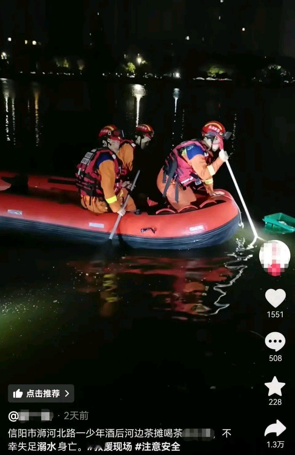 信阳这事儿挺闹心的。10月2号晚上,浉河北路一个小伙在河边茶摊喝茶时溺亡了。视频