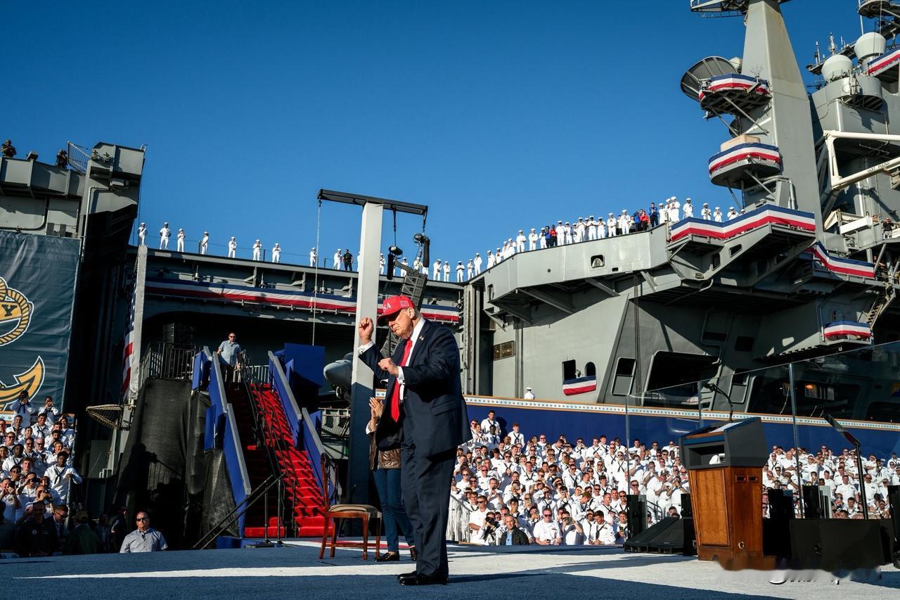 特朗普又阅兵了,这一次特朗普检阅了美国海军的航空母舰,并向数千名美海军士兵发表讲