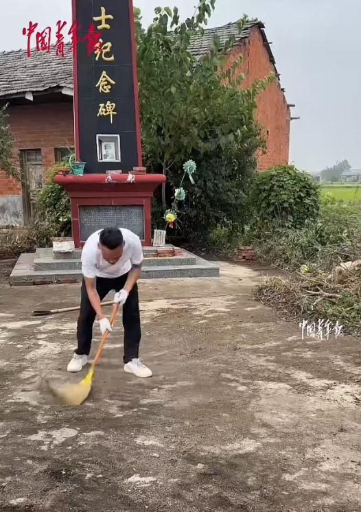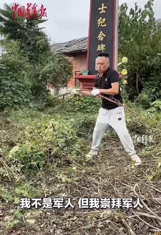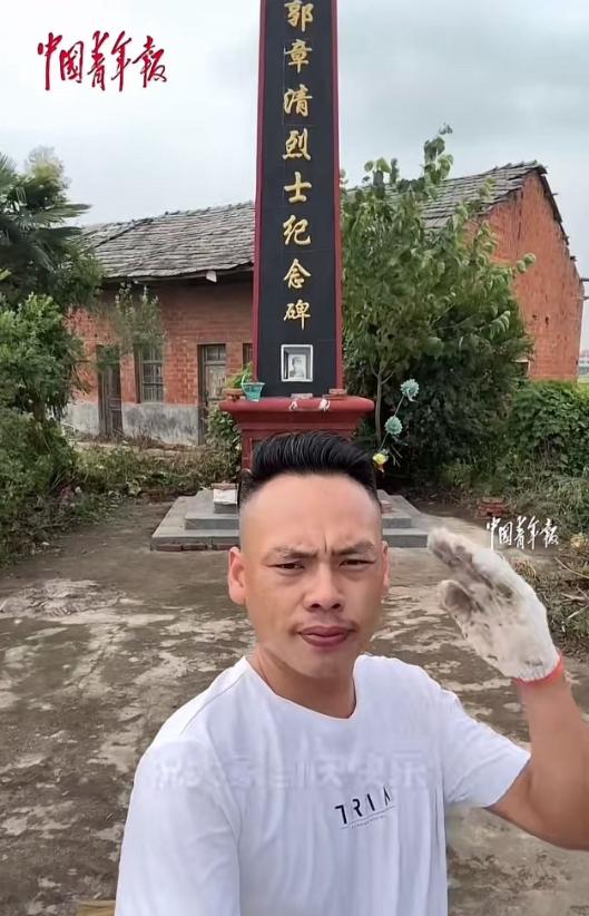 这个大哥火到青年报!9月30日,湖北荆州,一男子出差途中见一座烈士纪念碑前长满杂草,主动上前清理!男子:我不是军人,但我崇拜军人,缅怀先烈,铭记历史! 网友:很感动,但这个村的一把手应该检讨一下! 湖北荆州,一座烈士纪念碑静静矗立在乡间小路旁,杂草疯长,几乎要把石碑淹没。 9月30日,出差的范先生正好路过此地,眼前的景象让他愣住了,纪念碑周围野草齐腰,有的藤蔓已经爬上碑身,石阶缝隙里长出不知名的野花,风一吹草籽乱飞,像极了被遗忘的角落。 范先生没有犹豫太久,他把车停在路边带上手套,挽起袖子就开始拔草,没有工具全凭双手,指甲里很快塞满泥土,汗水顺着脸颊往下淌,滴在石碑上又很快被烈日蒸发。 路过的村民看见了,有人停下电动车:小伙子,这不是你的活儿,范先生头也不抬:碑在这儿,谁看见谁就该管。 这座纪念碑是纪念一位叫郭章清的烈士,可能是夏季野草长得太旺盛了,将纪念给包围了。 范先生徒手清理了能清理的部分后,又专门开车去附近的村民借来了镰刀、铲子等一些工具,开始全面的清理,经过两个小时的清理纪念碑终于露出原本的模样,碑文清晰可见,记录着郭章清战士的名字和牺牲时间。 清理完毕后,范先生站直身子,对着纪念碑敬了个礼,虽然他不是军人,但这个动作做得很认真。 事后范先生还将此事分享到了网上,希望大家看到革命烈士的墓碑时也能伸出援手,这件事被青年报等媒体纷纷报道,网友们也是纷纷为范先生的举动点赞。 其实这不是个例,全国各地都有类似情况,一些烈士纪念设施年久失修,杂草丛生,不是没有经费而是没人真正放在心上。 有退伍军人看到视频后专程赶去,带着工具帮忙维护,一位88岁的老兵说,他的战友就埋在附近,看到纪念碑这样心里难受。 范先生的行为像投进湖里的石子,激起层层涟漪,附近几个村的村民自发组织起来,轮流去各处烈士纪念碑除草、献花,有人在碑前放了把镰刀,刻着免费使用,方便路过的人随手清理。 镇政府也行动起来,把烈士纪念碑纳入美丽乡村建设规划,准备修缮道路、安装照明,但有老兵提醒:别搞得太花哨,烈士们要的是被记住不是被当景点。 这件事最大的意义是提醒所有人:英雄不该被遗忘,那些十几岁就牺牲的战士,他们把生命定格在最好的年华,换来的和平不应该成为遗忘的理由。 缅怀不需要多隆重的仪式,路过时顺手拔根草,看见垃圾捡起来,这就够了,别让英雄的纪念碑第二次牺牲在杂草和遗忘里。 范先生说得对:不是军人但崇拜军人,这份朴素的敬意,比任何豪言壮语都动人。 麻烦看官老爷们右上角点击一下“关注”,既方便您进行讨论和分享,又能给您带来不一样的参与感,感谢您的支持!