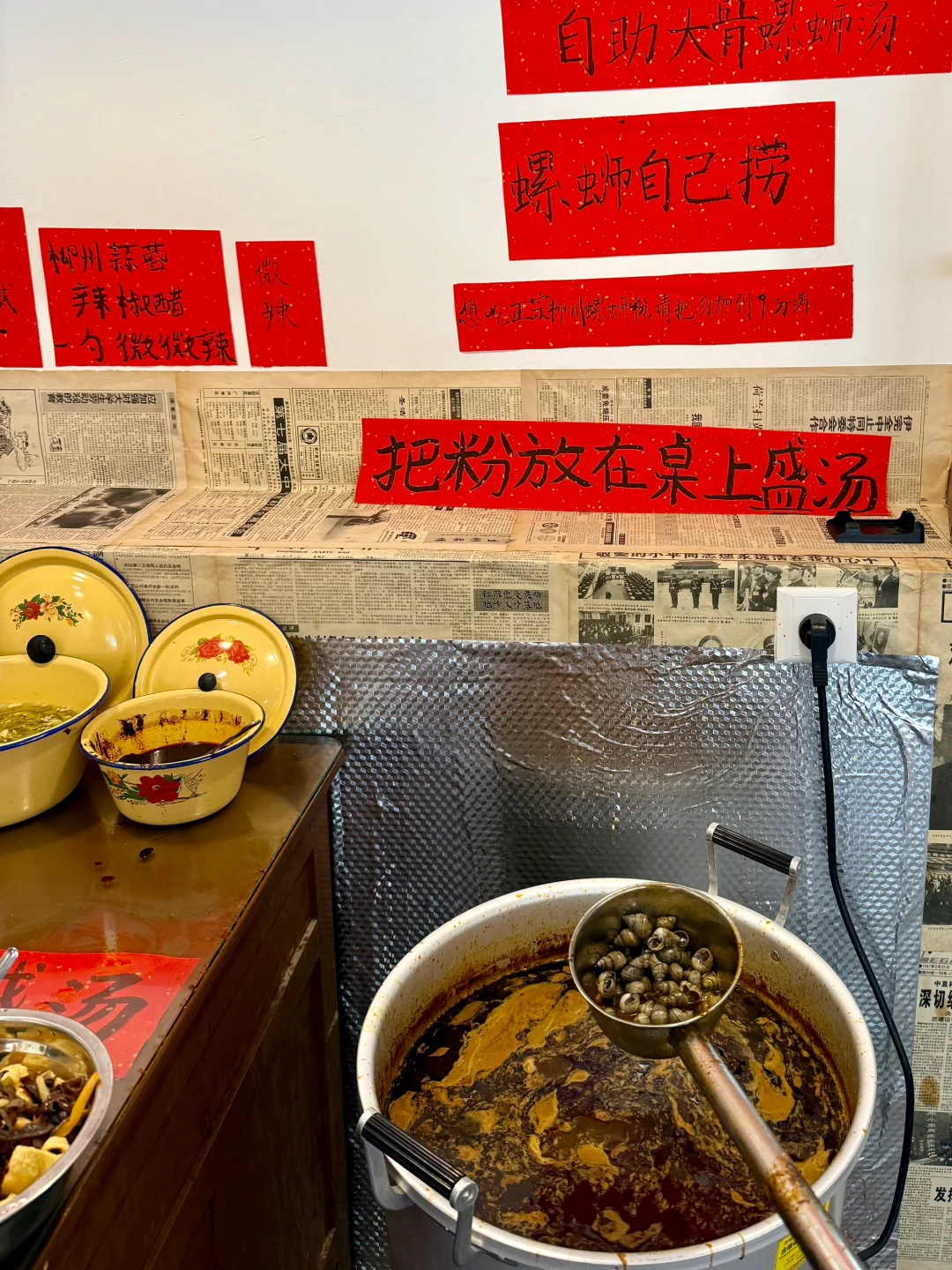 汤、粉、螺蛳、酸笋、还有各种小料和红糖冰渣