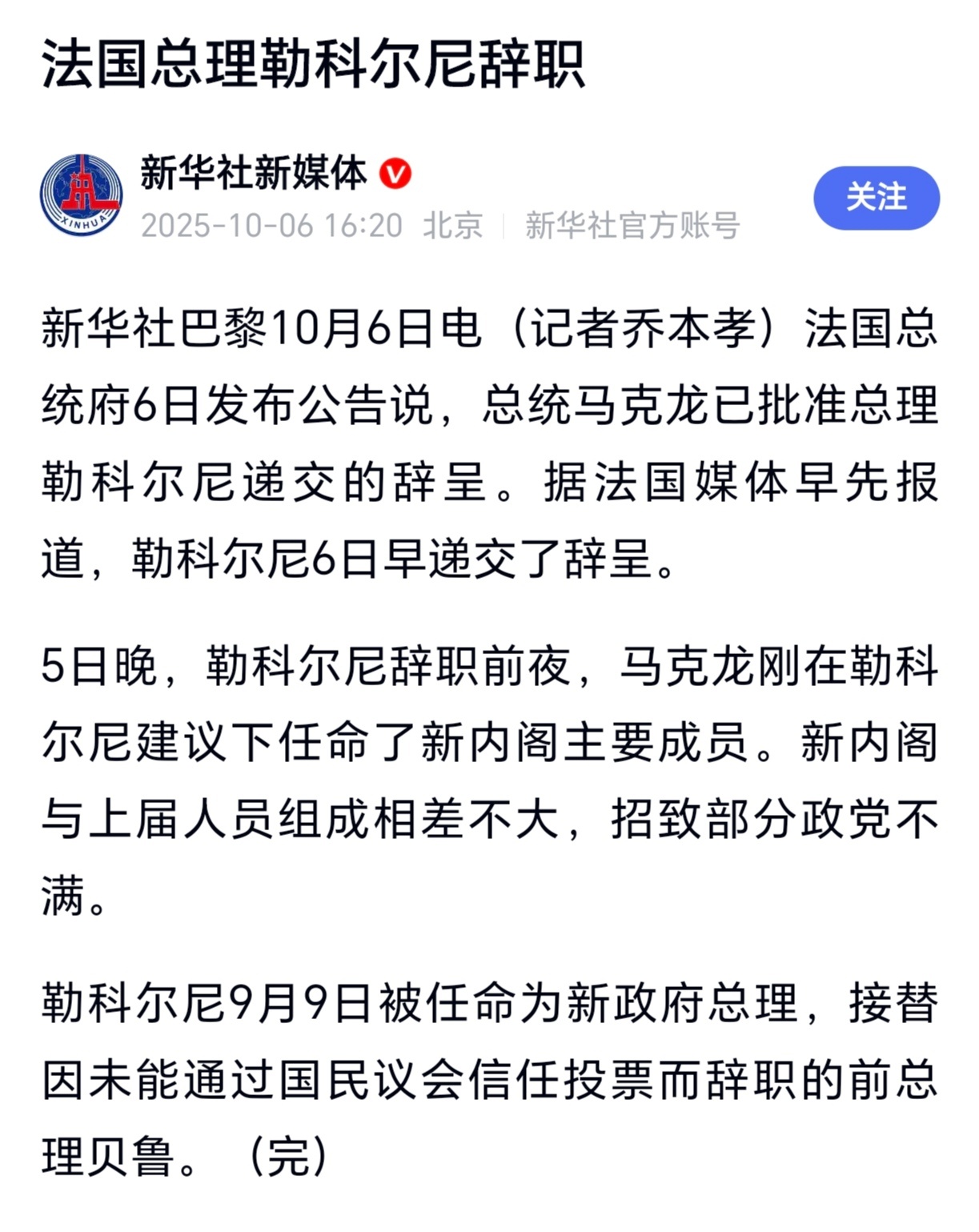 组阁完成当天就辞职,法国人也算是开创全新历史记录了。[开学季]