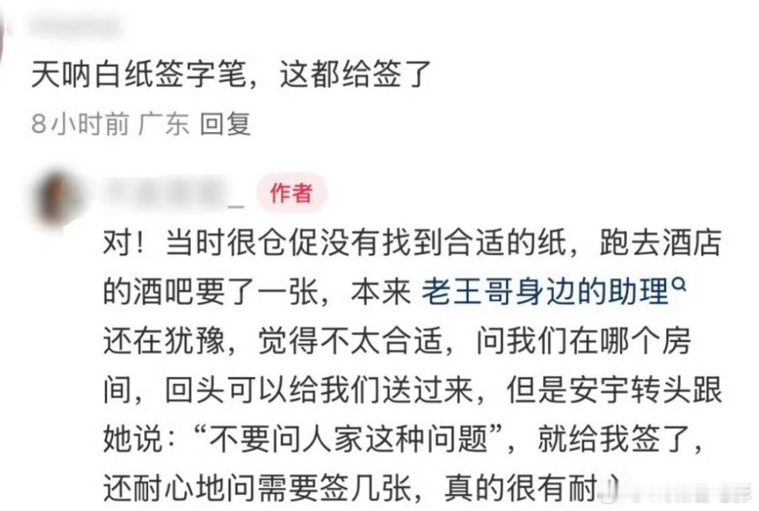 男艺人的敏感度🈶老王哥的反应真的很快很迅速,但是还是别用白纸签名吧,注意安全王
