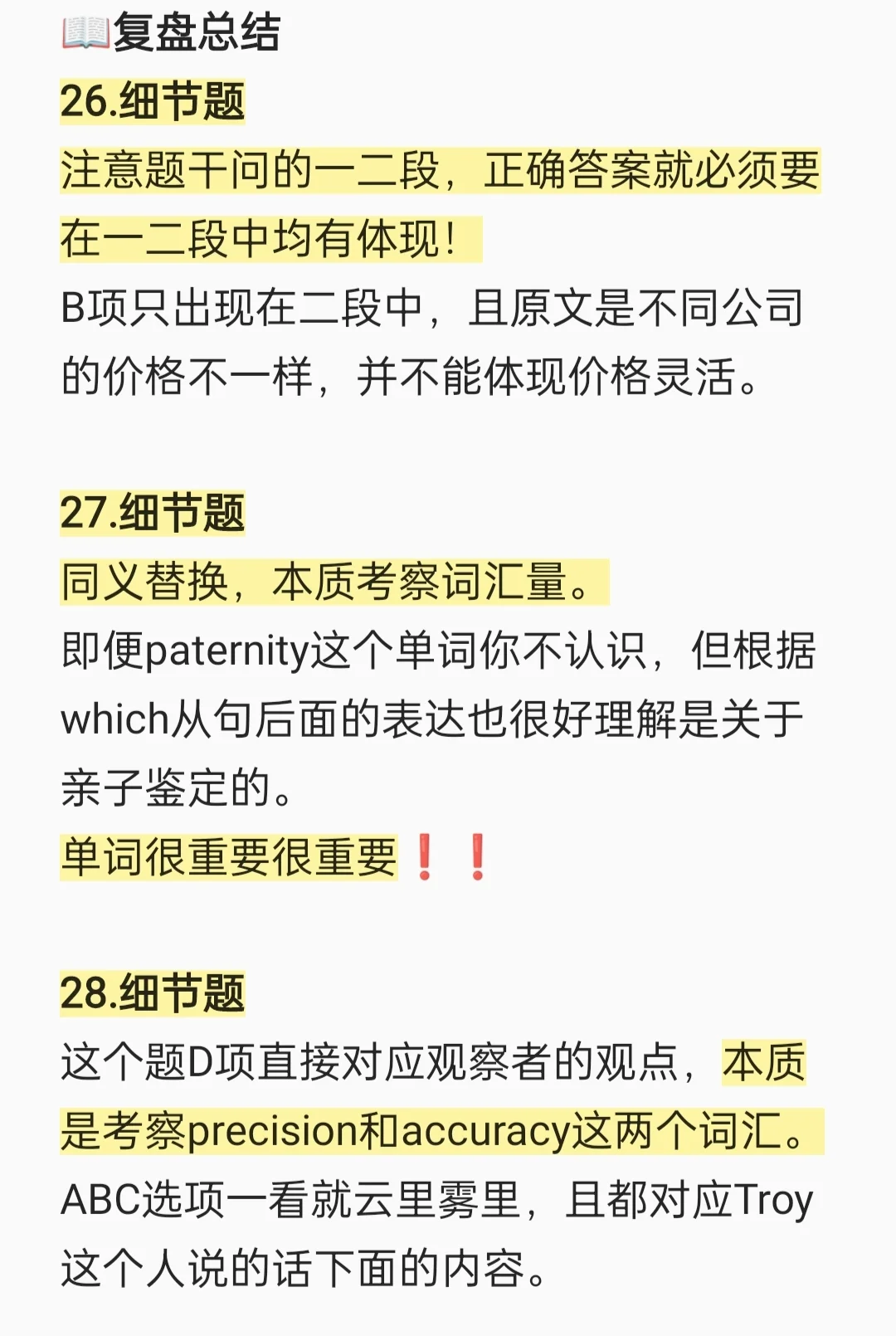 这个题D项直接对应观察者的观点,本质是考察precision和accuracy这两个词汇。ABC选项一看就云里雾里,且都对应Troy这个人说的话下面的内容。