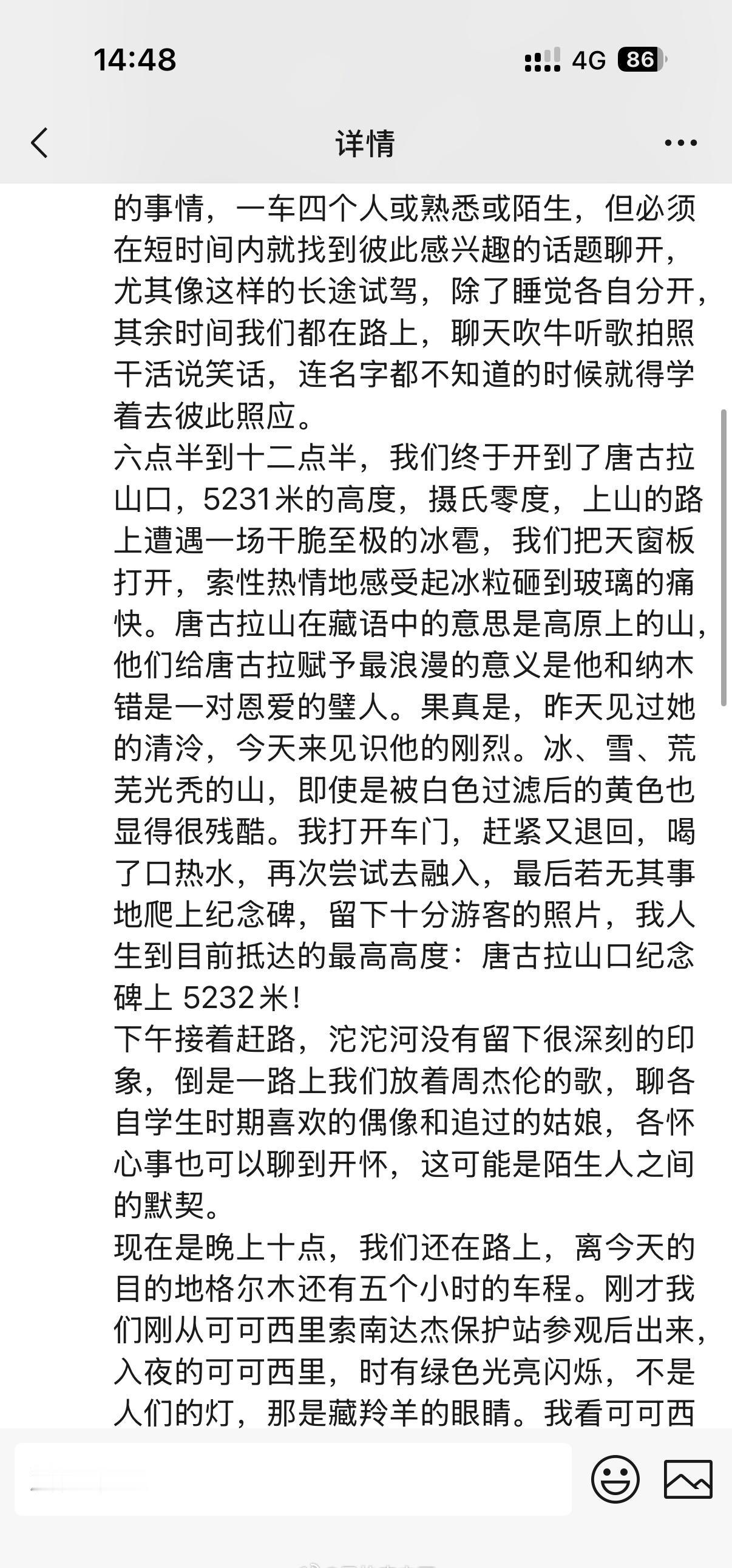 进藏啦! 这是我这十年里第四次来西藏, 走过青藏,到过珠峰,穿过羌塘, 但还是第一次完整走完最著名的318川藏线。 金沙江大桥的护栏上,很多人留下了进藏那一刻的感言,对所有向往远方的人而言,318是人生必驾之路,西藏是离天空最近的地方。 仅仅“进藏”,就已经意义非凡。 十年前,第一次来西藏,出发前如临大敌,过程中无比享受,朋友圈小作文当成日记,现在翻看,依旧真情实感,生动可爱。