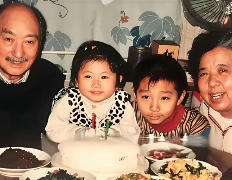 80岁的表演艺术家陈强在家中逗小外孙女张嘉芸,他的儿子陈佩斯与儿媳王燕玲在聊天,天伦之乐的场景。