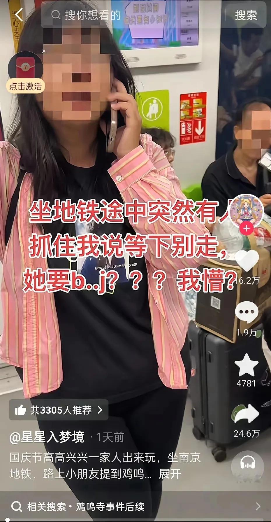 地铁车厢里,有人说句“鸡鸣寺”,女子突然跳起来指着对方鼻子骂。 好好的通勤
