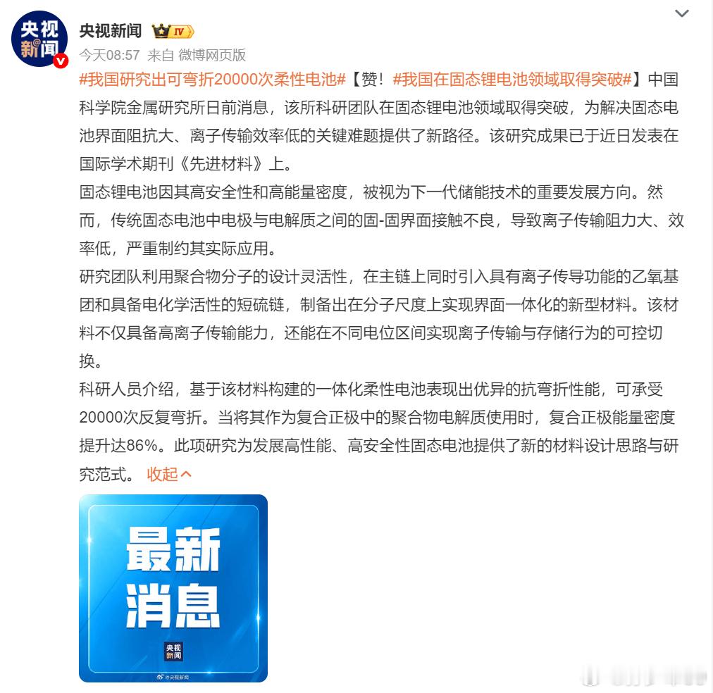 这个距离实际使用,大概还有多久[哆啦A梦吃惊]我国在固态锂电池领域取得突破