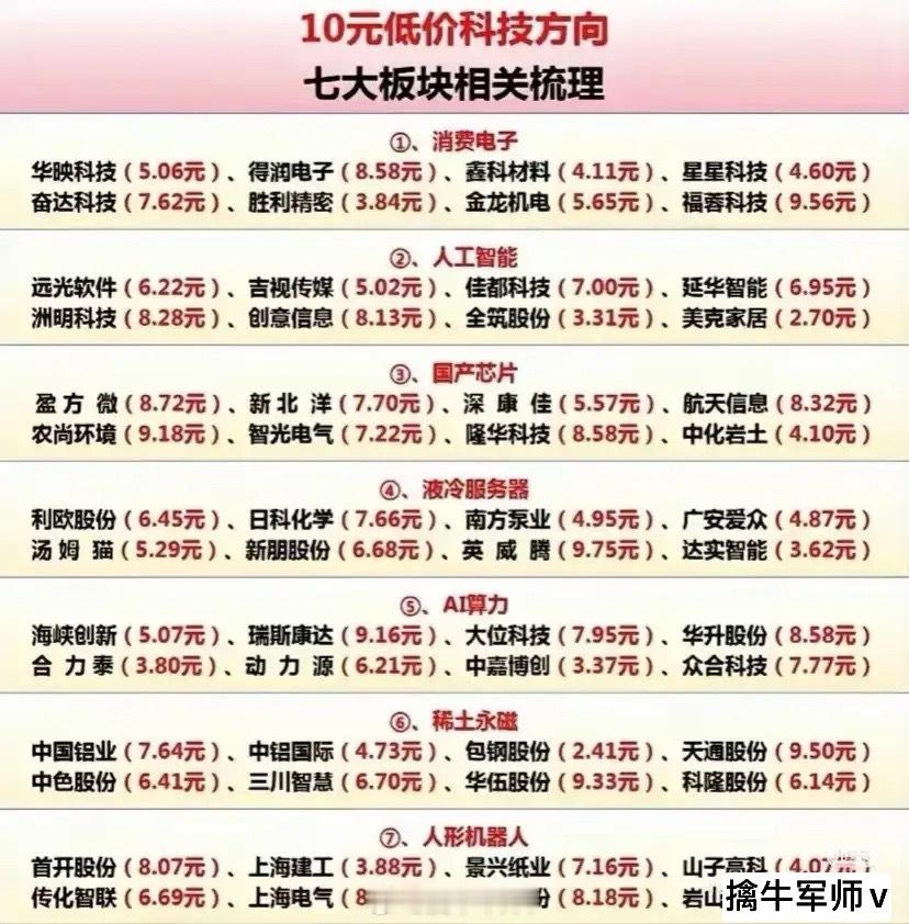 二、10元低价科技方向 · 七大板块相关公司梳理