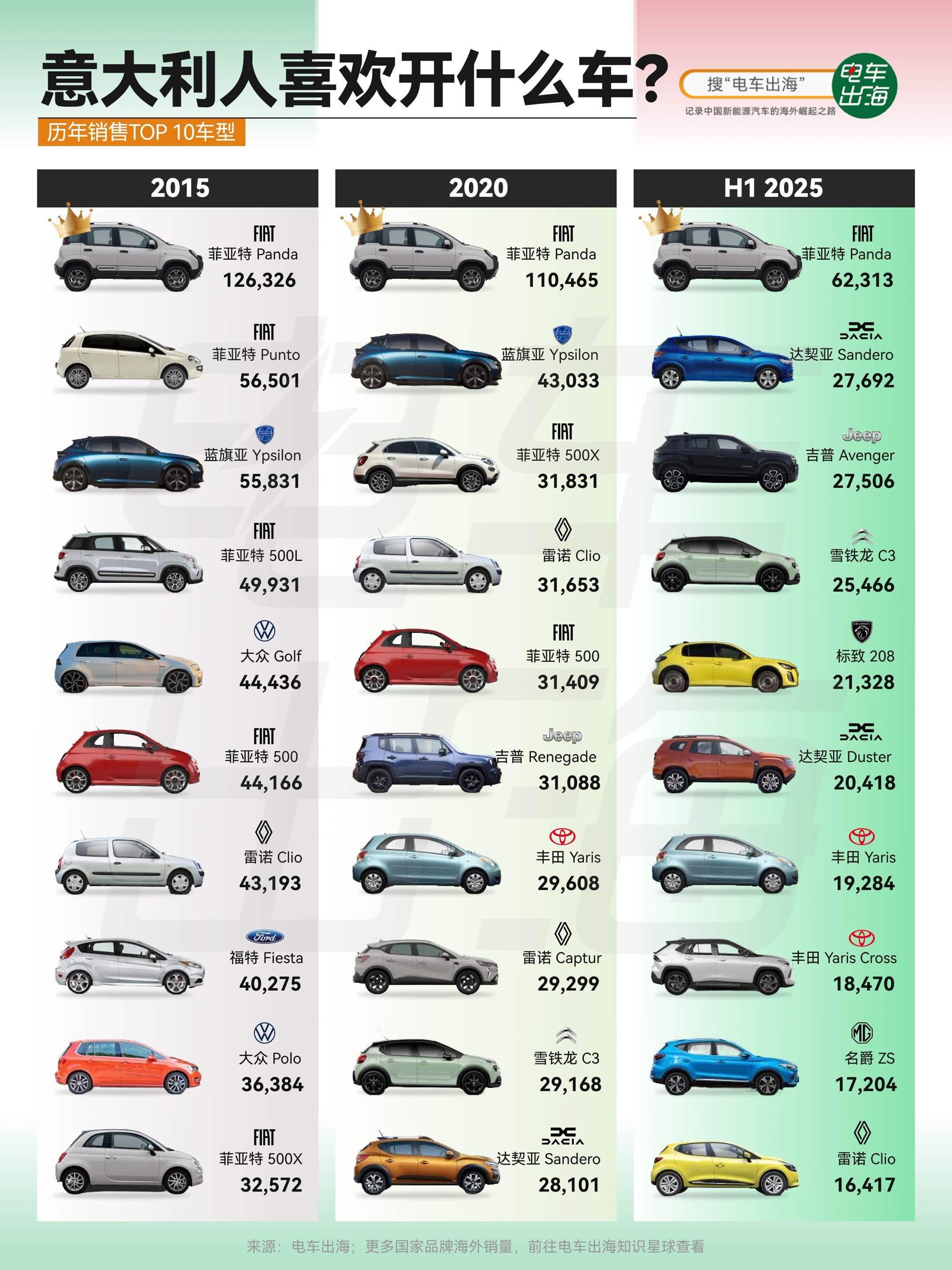 菲亚特作为本土品牌,十年前在销量榜前十还能占四个席位,如今只剩下一款独苗。虽然还能勉强保住销冠位置,但车型老旧,竞争力大不如前。