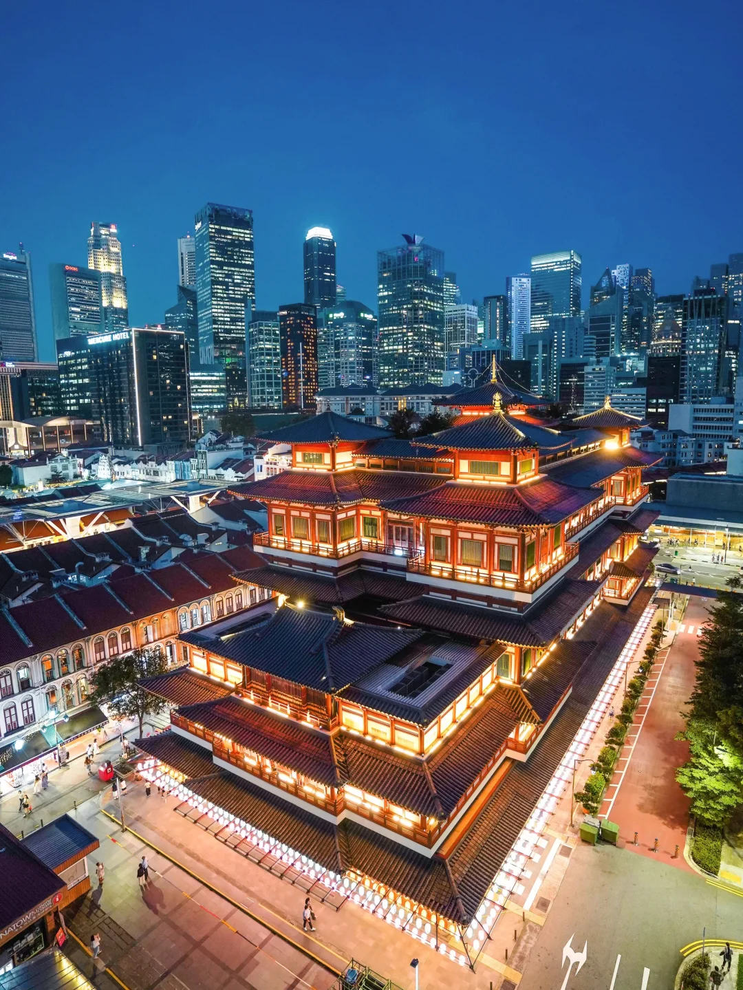 牛车水的一家居民楼12楼俯瞰佛牙寺,注意安静严禁喧哗