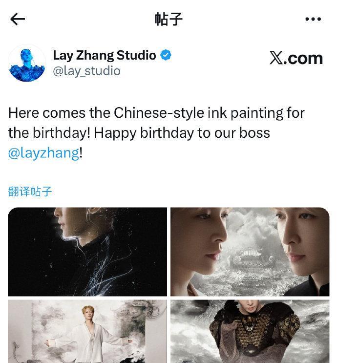 20251007 工作室ins推特更新15P Here comes the Chinese-style ink painting for the birthday! Happy birthday to our boss Lay Zhang. 中国水墨画风格,祝Boss@张艺兴 生日快乐!