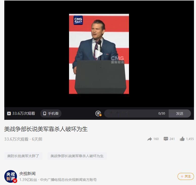 9月30日,美国战争部长竟公然向全球叫嚣:“我们一直靠杀人、破坏为生”。 这