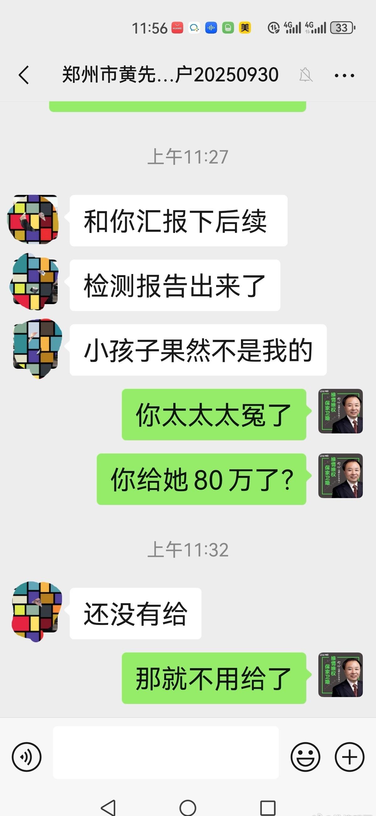 【维情喜报】又成功挽救一个家庭二条人命。维情专家团队,在双节期间努力帮助求助者,识别捞女保票子,收拾捞女保婚姻,惩治捞女保幸福……黄先生出差到海港城市被捞女团队围猎,一夜风流之后,间隔20天,就收到大长腿捞女的信息:“黄老板我怀孕了,我想生下来,我要出国养育你的骨肉”……黄先生吓得半死,他有可爱的老婆和一儿一女,无论如何不能让家人知道,他虽然之前有过多次风流,都是“快餐式爱爱”,付费购买服务,根本就不存在后续这些不干不净的一堆麻烦事,他没想到捞女有套路、有计划、有定价、有后援团、还有法律顾问,黄先生实在无力招架也无法应对,@求助维情集团经验丰富的27年专业惩治捞女的团队负责人舒心院长,很快为他制定了反击方案(三面排除/二方谈判/一招制服)。今天上午,黄先生拿到结果,放心了,高兴了,成功保住80万,也保住自己的一条老命,他本想跟捞女拼命,还想把捞女团伙搞个鱼死网破,现在最多花3万医疗费就平息了。(注:依法保护隐私,图文节选处理)