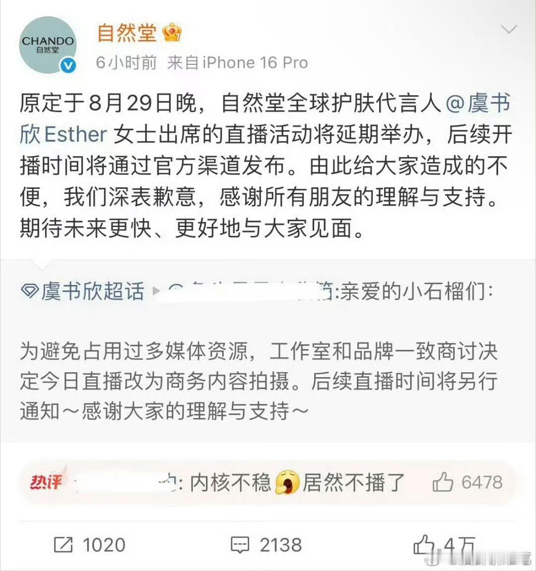 高位热搜,连续掉粉,直播活动取消,品牌物料不发,海外行程没去,新剧开机推迟,明显影响到本人工作了,就这样还不回应[流汗]虞书欣虞书欣沉默应对风波