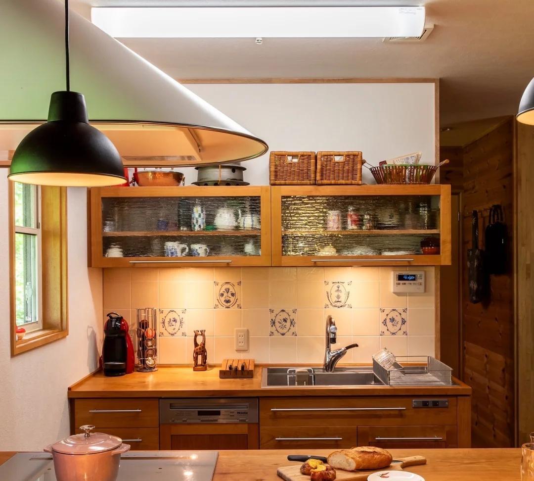 82岁老奶奶乡下5㎡的日式厨房,好温馨。 整体布置很巧妙,水槽和装有蒸烤箱的木制操作台靠墙,上部是带水纹玻璃门的储物柜,收纳碗碟和水杯,而另一面的灶台则与餐桌连在一起,老爷爷坐这里喝茶、阅读,还可以跟老奶奶聊聊天,互相陪伴,做好的饭菜也可以直接上桌,非常方便。 墙面贴蓝色动植物图案的白色墙砖,美观大方好清洁,给人一种清新自然的感受。 你喜欢这样布置的厨房吗? #万能生活指南#