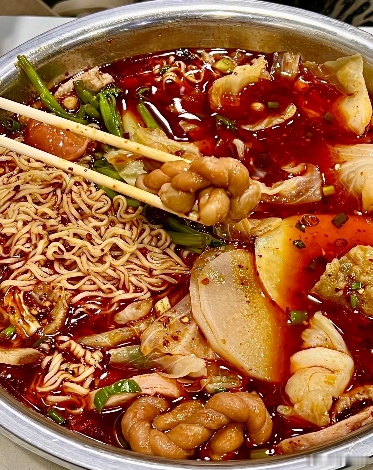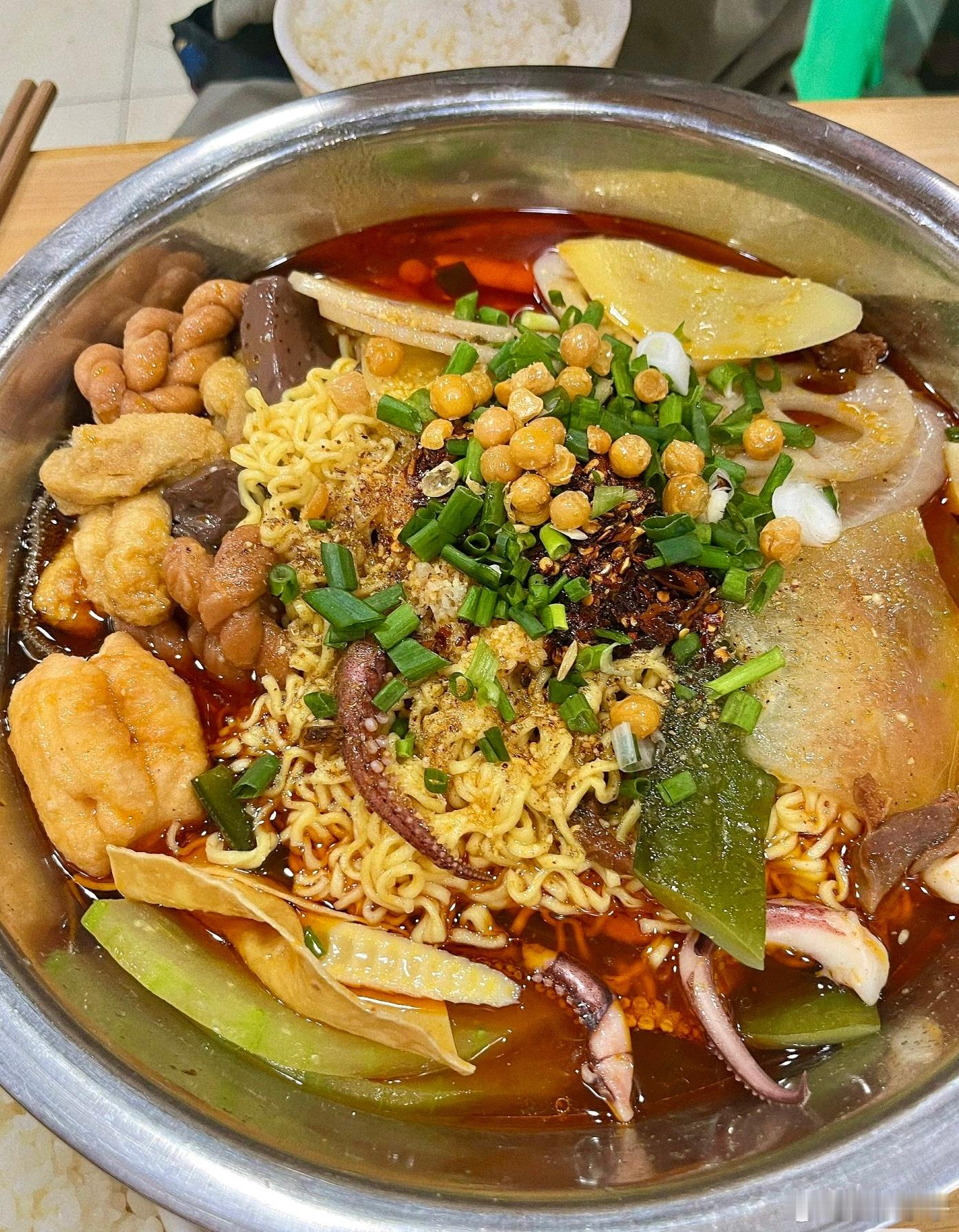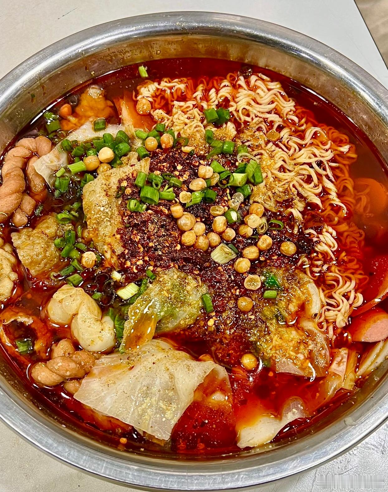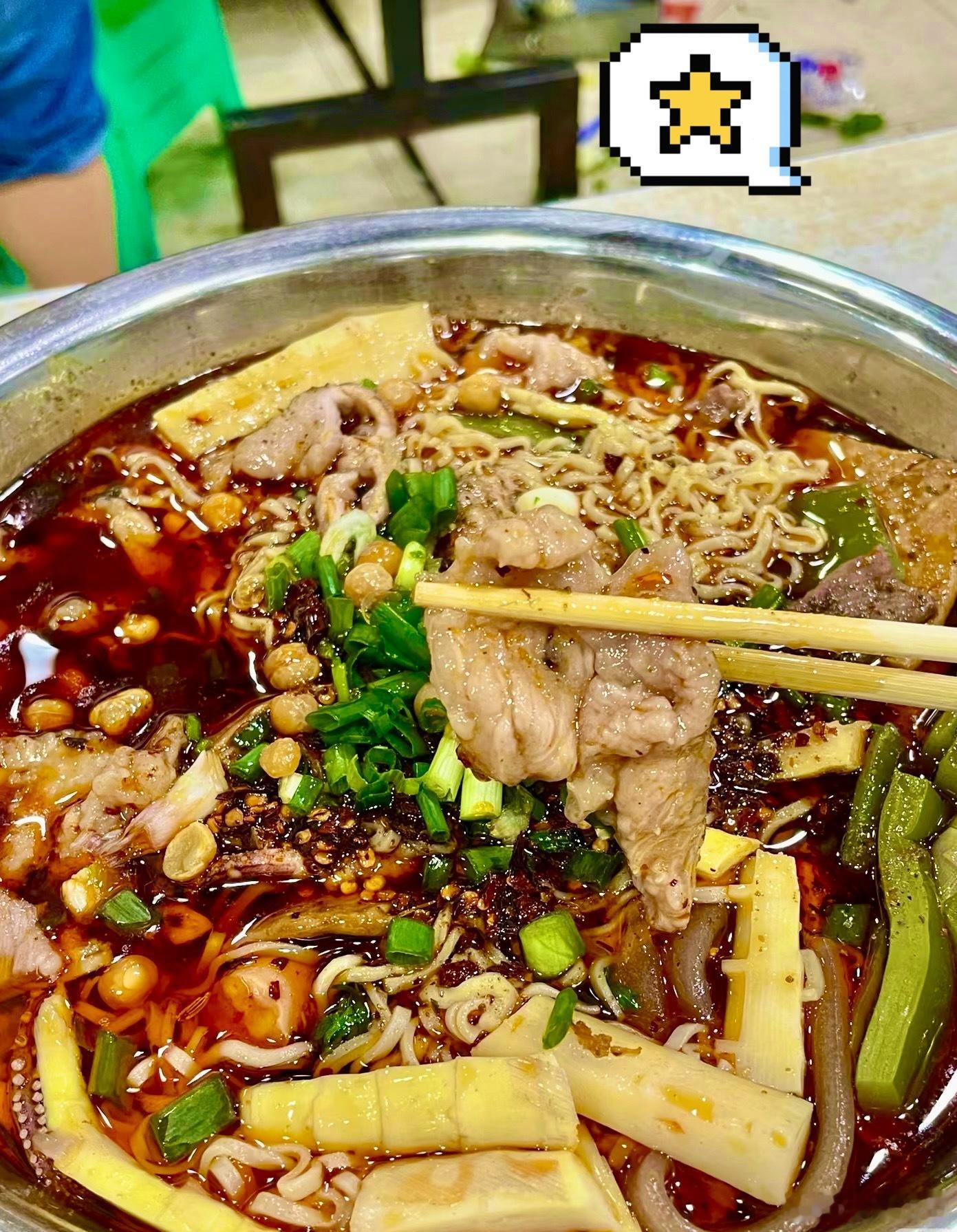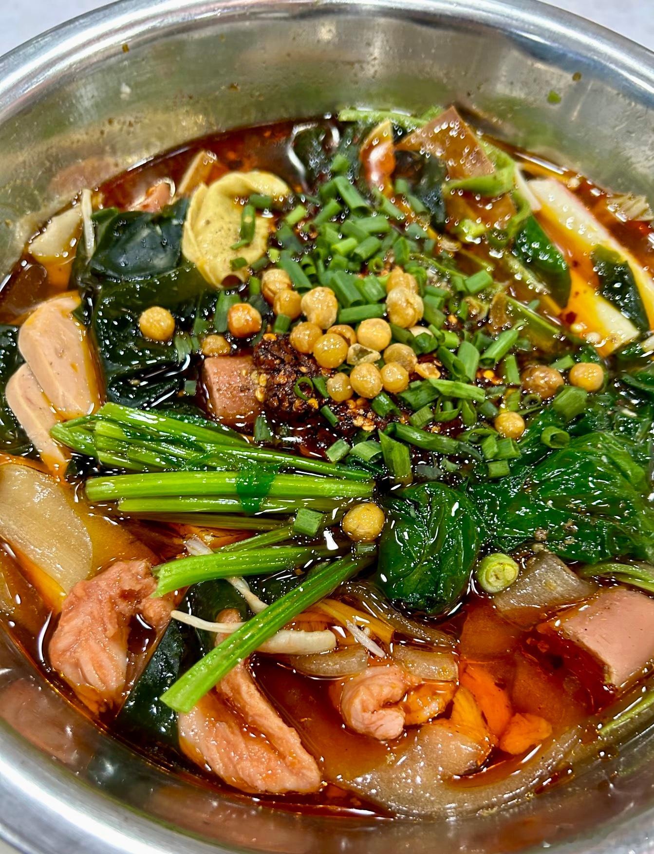 【重庆麻辣烫】光看看食品柜就知道他家人有多多,备货永远满满当当超级有食欲。他家能吃出来是牛骨汤底,加上牛油菜籽油混合的红油,烫好的菜上再来一勺现泼辣子,补充了锅气,几种辣味融合,吃起来是先香后辣,还有回味。对于重辣爱好者来说也许第一口觉得寡淡,属于越吃越香越有滋味那种。[馋嘴][馋嘴]