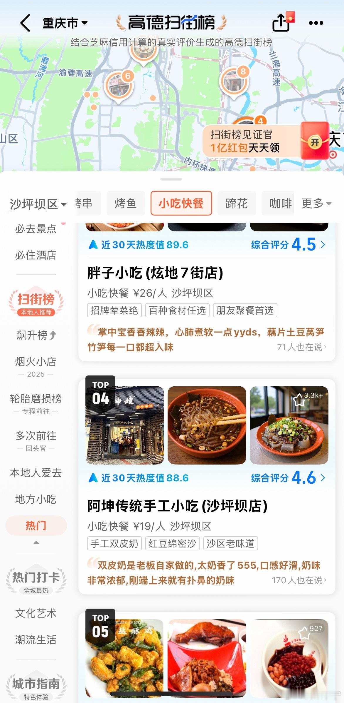 👉🗺️藏在沙坪坝三峡广场下面的这家胖子小吃店,是很多老重庆人的情怀所在。高德扫街榜热门榜第🥉三名见证了他的江湖地位。跟着榜单去扫街