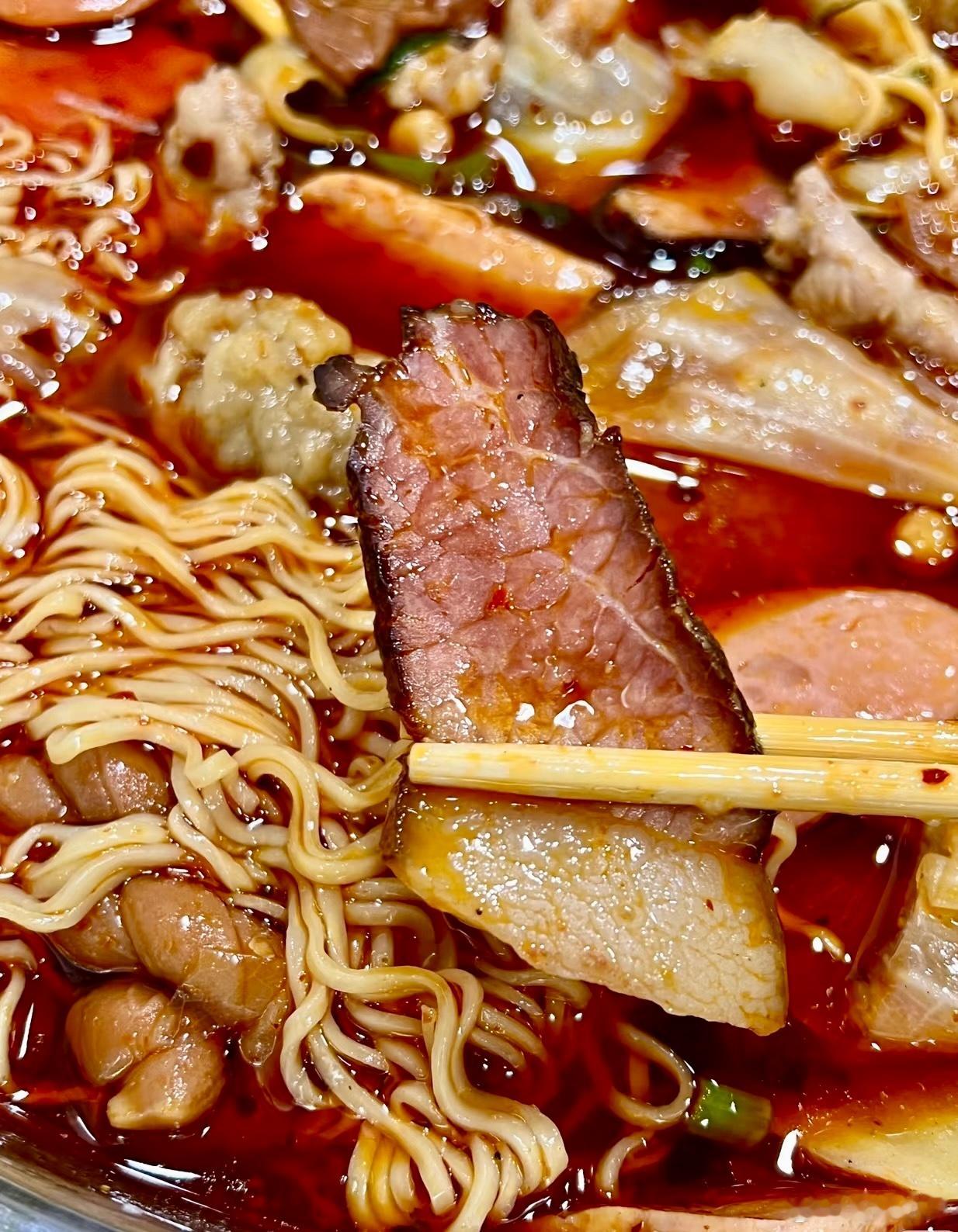 👉菜品推荐:牛肉是提前码过的,烫过超级滑嫩。腊肉香浓搭配着吃很绝。毛肚脆嫩好吃😋都值得一试。
