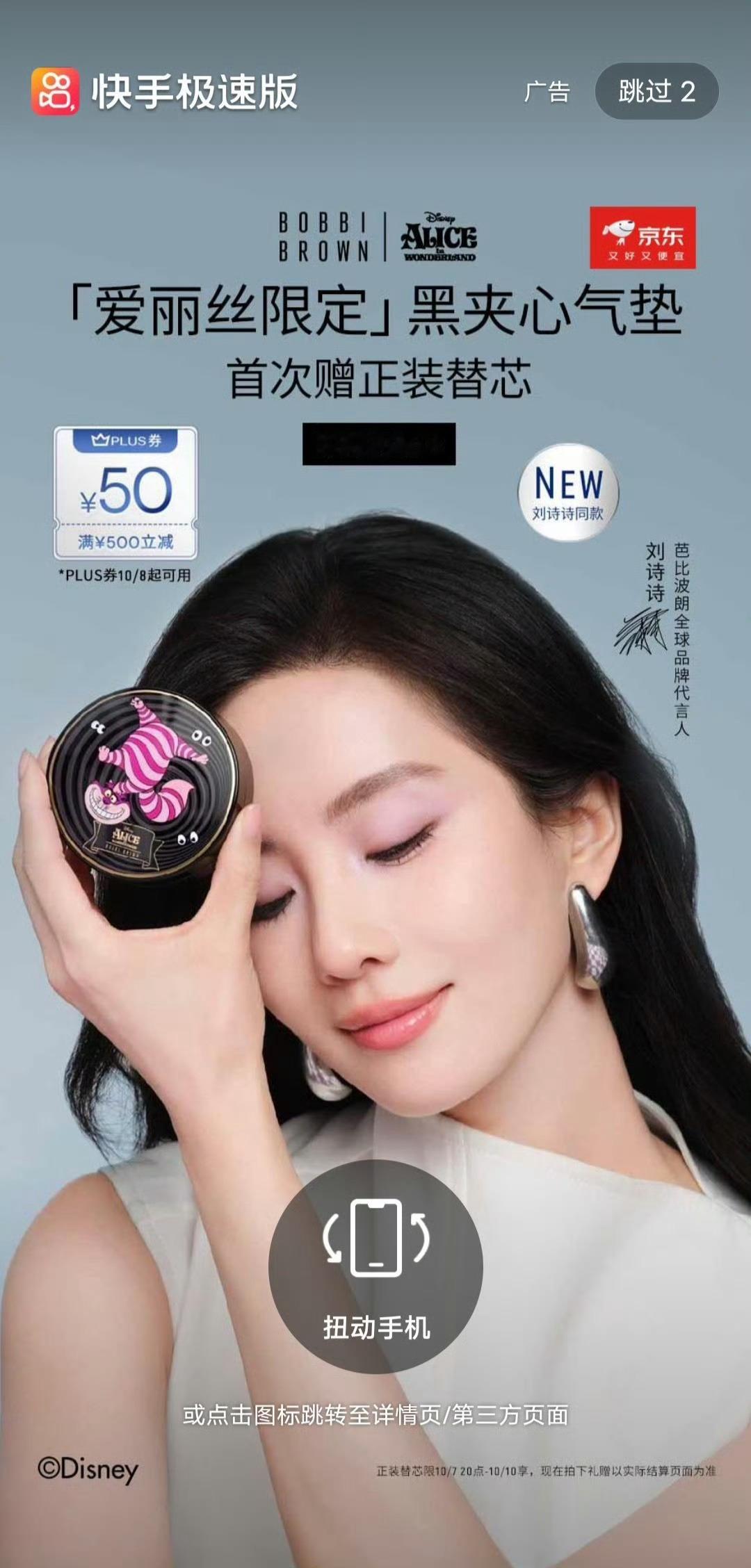 刘诗诗芭比波朗BobbiBrown各大app开屏,包括百度网盘,剪映,快手,某