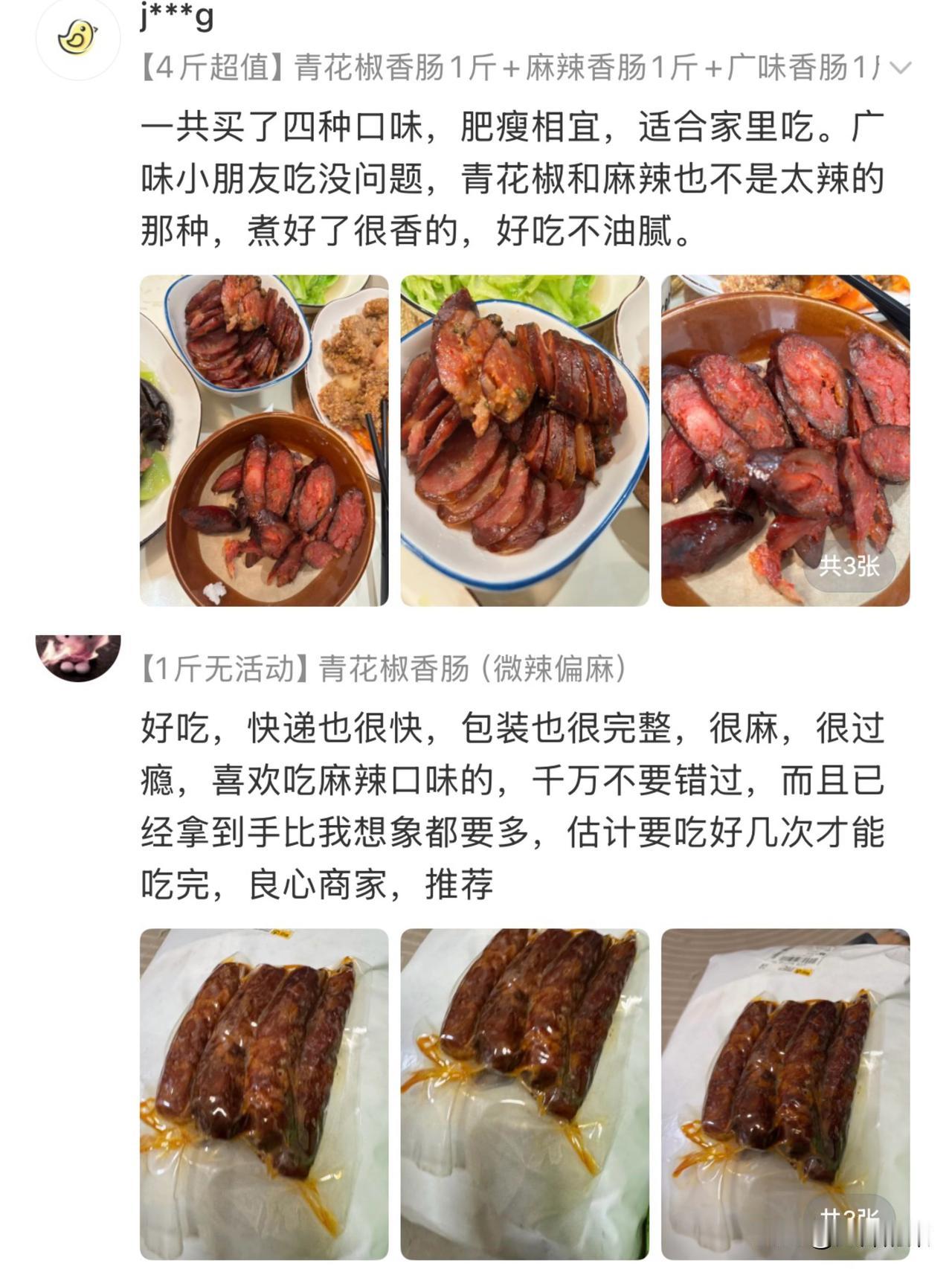 作为“大师的菜”腊味销冠,“青花椒香肠”上线仅一周,5000斤香肠就被抢购一空! 重庆39年香肠制作手艺人匠心之作,真材实料,新鲜猪肉,搭配重庆特色整粒青花椒,做川渝人认可的,童年记忆中的手工烟熏香肠! 至于味道如何?1000+的好评足以说明一切!(看真实评价图片) 网上买香肠,大家最担心踩雷的问题: 1️⃣是不是新鲜好肉制作? ❤️我们做腊味的所有猪肉都是检疫合格的好猪肉!做香肠只用后腿肉、前夹肉和正经肥膘肉,做纯鲜肉香肠!不用冷冻肉、劣质肉,不加淀粉、面粉滥竽充数。 2️⃣是不是纯手工制作? ❤️每一根青花椒香肠从切肉开始,拌料、灌装、烟熏等所有步骤都是纯手工完成。手工制作的青花椒香肠更有弹性,入口有嚼劲。纯机器灌装的香肠肉是茸的,一咬满嘴渣,没有手工香肠的Q弹韧性。 3️⃣是不是正宗川渝风味? ❤️青花椒香肠是重庆香肠手艺人30多年的匠心之作,微辣偏麻,口感滋润,用柏树等木柴烟熏72小时,是地道重庆风味,深受当地居民喜爱。 4️⃣至于味道怎么样? ❤️每个人对口味的喜好不一样,很难保证每一位顾客都100%满意,但我们可以保证每一根青花椒香肠都是大师秘制配料+优质食材制作,保证真材实料,货真价实。 不管是离乡在外的打工人,还是想尝尝正宗青花椒的外地朋友,或是想重温童年记忆家乡味的吃货们都可以放心尝试~ 【大师定制】青花椒香肠整粒青花椒不含淀粉麻辣四川腊肠柴火烟熏