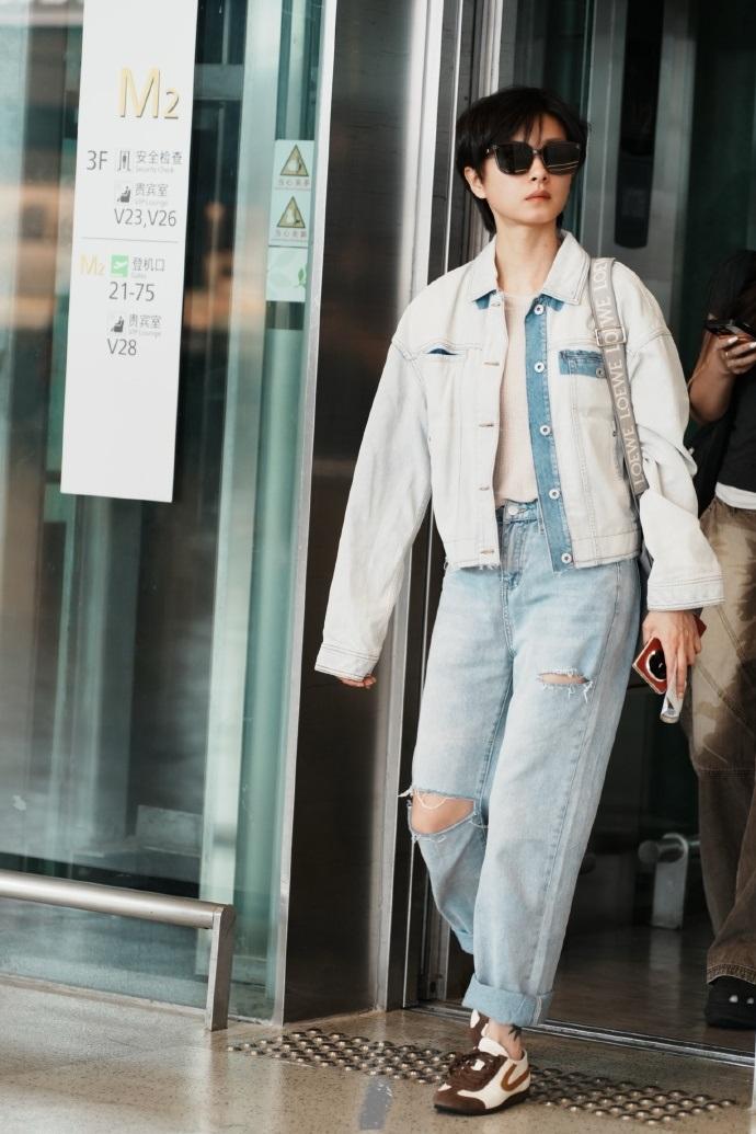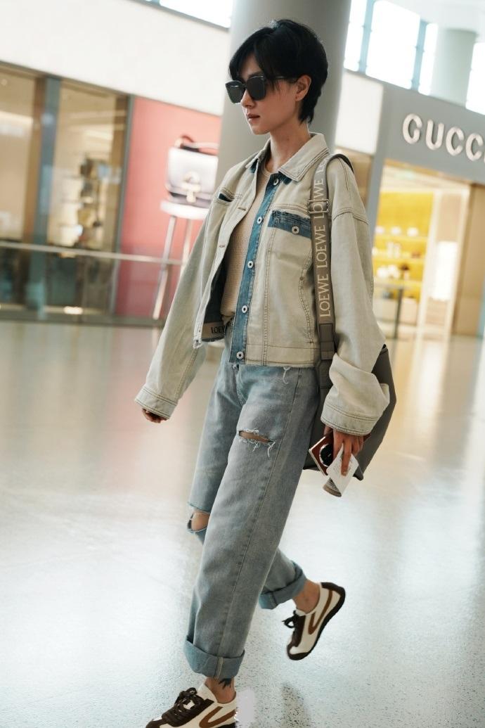 今天万茜在外出的时候搭配的很有潮流时尚感,而且显得好年轻,确实是非常的有魅力。 万茜里面穿灰色T恤,下身穿做旧风格的破洞牛仔裤,凸显出了完美的身材比例。 她脚踩拼色风格的复古风运动鞋,看上去有种活力满满的感觉,确实是很漂亮。 万茜外面穿了一件短款牛仔上衣,让她展现出了很好的身材比例。 她留着清新的短发,还戴着黑色的墨镜,整个人显得好酷,也很拉风。她背着灰色的包包,像个青春美少女。