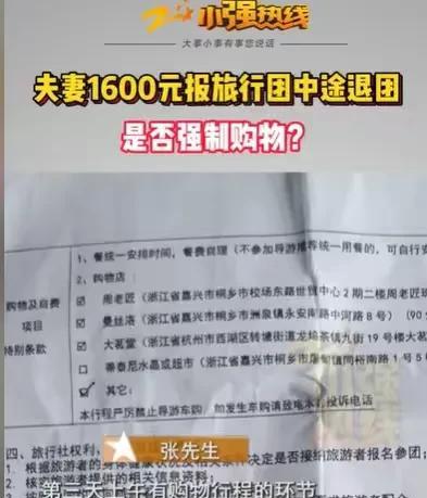 山东舟山,男子报了一个团,从杭州到乌镇,3天2晚,他和妻子两个人只需1600元,说好第3天有购物环节,并且是自愿的,可在去的路上,导游跟他们明确地说:你们报的团太便宜了,他们也要生活,所以有强制购物环节。男子听了不乐意,半途退了团,旅游团只退回700元,他觉得不合理,回来反手就投诉了旅游团。 张先生早就有计划了,要在国庆假期,带着妻子好好出去旅游一番,他提前做了准备。 他考虑到他的年纪也不小了,如果是自驾游比较累,他就报了一个团,而且他觉得那个团非常不错。 这个团可以去杭州西湖,还可以去乌镇,还有别的地方,景点非常多。 这些景点都是张先生和妻子非常想去的地方,而且这个团时间是三天两夜,他有足够的时间逛完那些景点。 关键是,这个团只有第3天才有购物环节,并且还是自愿的,如此一来,报这个团,买不买东西都没有问题。 更何况每个人只要800元,他和妻子一共才需要1600元,就可以痛痛快快地玩三天两夜,这期间旅游团帮安排好酒店,安排好景点,他觉得非常不错。 于是他就报了这个团,他和妻子都抱着期待,开始的时候他们也玩得挺开心的,只是在去乌镇的路上,情况发生了变化。 导游竟然跟他们说,他们报的这个团,实在是太便宜了,价钱太低了,他们也是需要生存的,也需要吃饭的,所以他们有强制购物环节。 张先生一听,这不就是强制他们买东西吗?他和妻子出来游玩,一开始就没有打算要买东西,而且强制买东西,还得额外花钱,不买又不行,反正他们也玩了一些地方了,他们决定退团。 如此一想他和妻子就退团了,当时张先生害怕导游不给他们退,就编了个理由,说家里有事,要退团。 导游听到张先生说家里有事,也不好意思拒绝,就退了700元,他跟张先生他们说,酒店已经安排好了酒店,景区的门票也买好了,那些都是退不了的,所以只能退700元给张先生。 张先生和妻子心里虽然不是滋味,但能退回多少也是能拿回多少,于是他们就退团回家了。 可回家之后,张先生越想越觉得亏了,他们还没有逛几个景点,900块钱就没了,更何况是他们违约在先,就应该退回全部的费用。 于是他找到了调解员,他们联系了旅行团,旅行团解释道,张先生是以家里有事为由退团的,他们确实已经把酒店以及景区门票安排好了,按照规定只能退700元。 并且旅游团表示,他们并没有强制购物,在行程中第3天,本来就是有购物环节的,实际上他们有的人也没有买东西,他们也没有强制要买,张先生退团是个人原因,不能退全款。 可张先生不是这么想的,他投诉了这个旅行团。 那么旅游团是否应该给张先生退全款? 1、张先生报了团之后,与旅游团是构成合同关系的,双方需要履行合同义务。 《民法典》第509条规定:当事人应当按照约定全面履行自己的义务;当事人应当遵循诚信原则,根据合同的性质、目的和交易习惯履行通知、协助、保密等义务。 在合同当中,他们有约定第3天有购物环节,是自愿的,那么导游可以带旅客去购物,至于买不买是旅客的事情。 2、张先生退团是以家以有事为由,并非是以旅游团违约为由而退团的,那么该旅游团不需承担违约责任。 由于旅游团确实已经帮张先生他们买了景区门票以及安排了酒店,这些都需要花费一定的钱,因此导游团不需要退全款。 那么你认为旅游团需要退全款吗?#头号创作者激励计划#