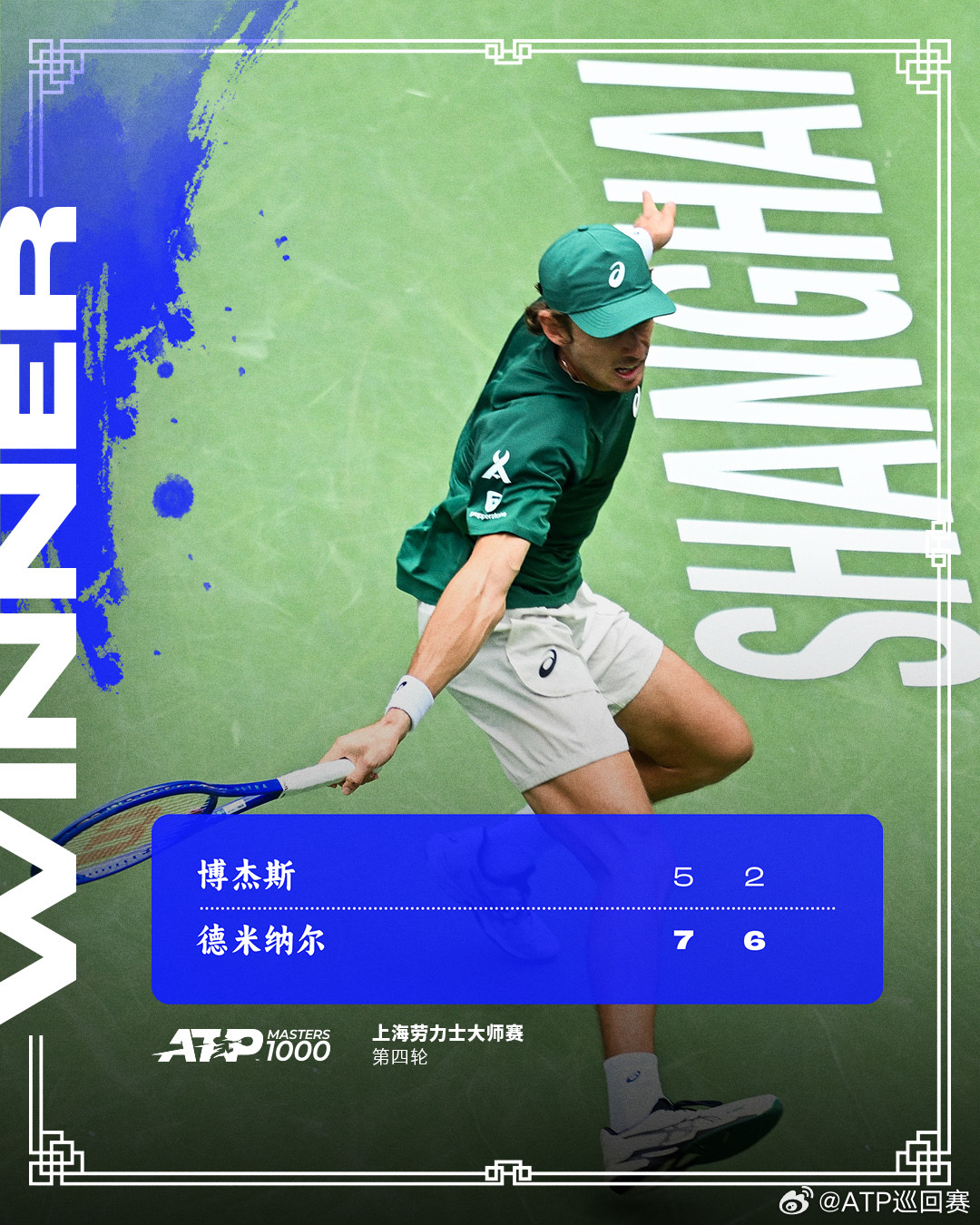 男单第四轮,7号种子德米纳尔7-5 6-2击败葡萄牙选手博杰斯,赢下双方首次交手的胜利!他也成为继阿尔卡拉斯和弗里茨之后,本赛季第三位收获50胜的球员!德米纳尔四分之一决赛对手将在梅德维德夫和勒纳·钱之间产生。