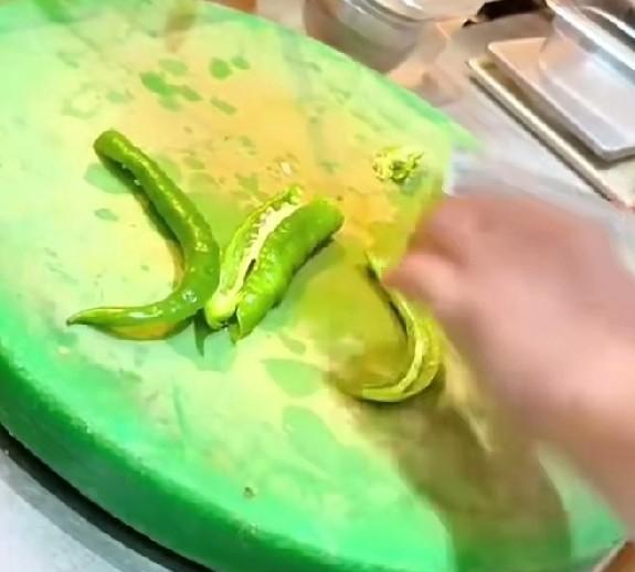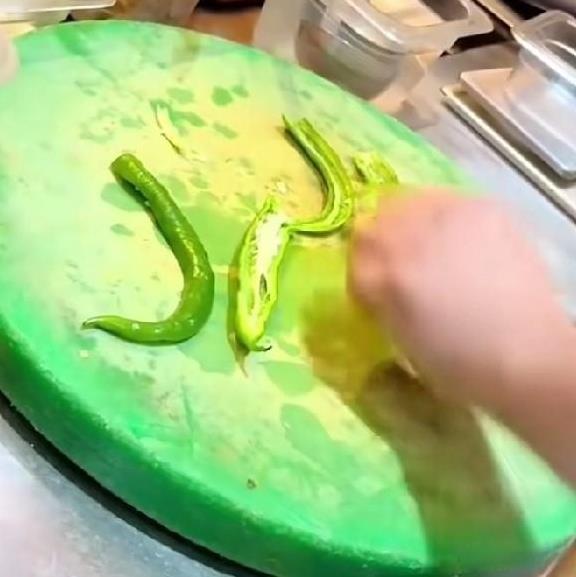 西贝真是令人哭笑不得,本以为能看到他们现场做菜的真功夫,厨师却拿出了游标卡尺,这有点脱裤子放屁了——多此一举了。 近来,深陷预制菜和二次加工争议的西贝也开始现场做菜了。截至目前,我看过他们做凉拌青瓜,还有这次看到的尖椒炒牛肉。 尖椒炒牛肉是道家常菜,很多厨艺一般的人都会做。毕竟牛肉和尖椒下锅,怎么炒味道都不会太差,无非是牛肉口感硬一点或软一点的区别。 这次的尖椒看起来是新鲜的,因为我没看到是从袋子里拿出来的,而是散装的,估计是从市场买回来的。 两个尖椒先放在垫板上,接着平刀切成两半,用刀刮去辣椒籽,再切成段。这一系列操作平平无奇,就是普通的刀工,不快不慢,跟普通人差不多,根本看不出是厨师的水准。 之后他又斜刀切成段,这就让人纳闷了。尖椒一般都是切丝的,他却切成段,不知是何缘故,难道是刀工不行,只能切断? 接下来的操作更是让人忍不住发笑。只见这位厨师拿起一块尖椒块,从旁边拿了个游标卡尺来量? 我真是头一回见,西餐搞些精细操作量一量还能理解,但这是做中餐辣椒炒肉啊,拿个游标卡尺算怎么回事? 要是刀工好,切的时候心里有数,根本不用量。可看这切出来的尖椒块大小不一,有什么好量的呢? 更何况尖椒本身头大尾小,怎么可能每块都一样,量它有什么意义?要是四四方方的豆腐块、东坡肉之类的,量一量倒还有点意思。 不得不说,用游标卡尺量辣椒块,表演痕迹太明显了。头大尾小的尖椒块,根本不可能每块都一样,真搞不懂量它干啥。说不定是想把这个动作录下来,传播到网络上,打造西贝餐厅厨师做工认真的形象。 但这也太牵强了,因为选的“标本”不对啊,量豆腐块还有点意义,量辣椒块简直就是脱裤子放屁——多此一举。 我想问,这辣椒炒肉有啥好表演的?好歹表演个文思豆腐,来个豆腐丝穿针眼,那还能让人看到厨师真有刀功,而不是像现在这样,连个辣椒都切不了丝,真让人替他们感到羞愧。 大家怎么看这种表演?