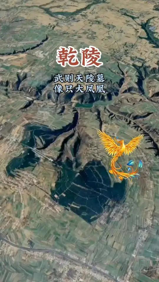 [中国赞]不得不说,1400年前为武则天选陵的人太可怕了。这是卫星拍的,武则天陵墓周边的照片。选陵人为我们找到了,这么绝美的,凤凰振翅欲飞的风景。   武则天身为我国历史上唯一一个女皇帝,她可以说是拥有着诸多传奇历史故事,而她在离世后,则是和唐高宗李治一起埋葬在乾陵。   由于两人都是中国历史朝代上的风云人物,因此乾陵的选址非常重要,一旦选错了,到以后就会有被盗墓的风险,甚至加上各种自然灾害,墓穴也有坍塌的风险。   而埋葬武则天的乾陵,据传言是朝廷官员令袁天罡和李淳风寻找的,而两人之间没有任何的商量,就将乾陵的地址选在了同一个地方。   这种情况不仅仅是一个巧合,更证明两人所选的地方,的确是一个风水宝地,更是一个安全的地方,而武则天对此也是进行了批准,直接下令开始动工修建。   想要修建一座皇帝陵墓,可不是一件容易的事情,再加上当时的建筑条件,这并不是一年两年就能完成的工作。   可谁都没有想到,乾陵还没有修建完毕,李治就去世了,于是只能先行将其安葬,随后便继续修建。   直到20年之后,武则天去世,她也被安葬在这座陵墓之中,两位帝皇的陵墓,自然是非常的壮观,里面更是埋藏了大量的金银珠宝等陪葬物。   也正是这个原因,导致后来有很多人打乾陵的主意,他们都想在乾陵之中盗取大量的金银财宝,从而实现一夜暴富的梦想。   可面对乾陵,大多数盗墓贼都被拒之门外,任何人都无法打开乾陵,甚至他们根本就不知道乾陵的具体位置在哪。   而在历史记载上,就有很多人甚至是组织前往寻找并挖掘乾陵,但最终都无功而返,就比如黄巢之乱的时候,就有大量的起义部队一起挖掘乾陵,但最后连墓穴入口在哪都不知道。   后来到了民国时期,国民党多次乾陵的主意,甚至用炮弹轰炸,都无法打开乾陵的大门,最终也是无功而返。   那么多盗墓贼都栽在乾陵上,慢慢的,大家也都不再抱有幻想,可此时,奇怪的事情再次发生,一次山崩,乾陵的入口意外被村民发现。   由于村民并不知道这是什么,直接联系了相关部门进行调查,当时大家还没有意识到这是真正的乾陵,因此当时也充满各种危险,一旦被盗墓贼发现,那么很多珍贵的历史文物或者乾陵现场就会遭到破坏。   万幸的是,相关部门紧急介入,并没有给盗墓在带来机会,这才发现了乾陵的真正位置,经过专家的改造,乾陵的外部也被修建成一个著名的旅游景点。   历经1400年,乾陵的真正位置才被发现,不得不说,这个地方选的是非常的好,然而让人感到更加震惊的还在后面。   那就是通过卫星拍摄的画面可以看到,乾陵的大致形状,竟然仿佛一个涅磐重生的凤凰,这对武则天的身份有着一定的呼应。   毕竟自古以来,“龙”“凤”这种生物都代表着“帝皇”,而武则天又是一名女性皇帝,因此用凤凰来代替,毫无违和感。   看到乾陵的卫星照片后,很多人都感到非常惊讶,要知道,在1400年前,对乾陵选址的时候,可没有卫星照片。   而选下这块地方,则是通过当时的风水参考才定下的位置,当时并没有人说乾陵的模样像凤凰,可时隔千年,乾陵再次重现人间之后才发现,这个卫星照片和传说中的凤凰长得太像了。   不得不说,古人的智慧也是不容小觑,当然,乾陵的模样长得像凤凰,这或许不是一个巧合。   虽然在1400年前,根本没有拍照这种东西,但是古人根据地形也可以描绘出大致地图的形状,因此在选址的时候,也有一定的可能有人发现了乾陵的位置像凤凰。   这个意义对于武则天来说非常的深刻,或许这也是武则天同意在此修建乾陵的原因,当然,这一切都是后人的猜测。   毕竟并没有历史资料可以证明,当初在选址的时候,就是看上了乾陵的地形长的像凤凰,因此也有可能,这只是一个巧合。   但对于这份“巧合”,很多人都感到奇妙,大自然的鬼斧神工,给武则天创造了一个长的像凤凰的天然墓穴。   这或许是对武则天所做出的成就给予的认可,毕竟说这只是一个巧合,很难有人相信,或者说,这个巧合过于巧合了。   历经千年,乾陵依旧保存的非常完整,在里面还有着很多秘密,但秘密终究是秘密,想要探寻,肯定是要付出一定的代价,因此不如让其保存的更加完整,避免更多人去进行破坏。 信息来源:乾县人民政府《乾陵选址之谜》