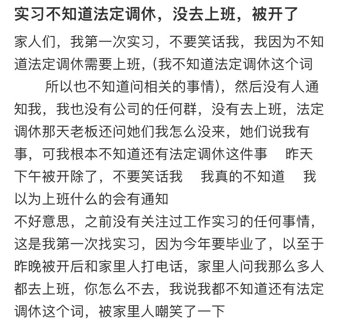 实习生不知道法定调休被开了[哆啦A梦害怕]