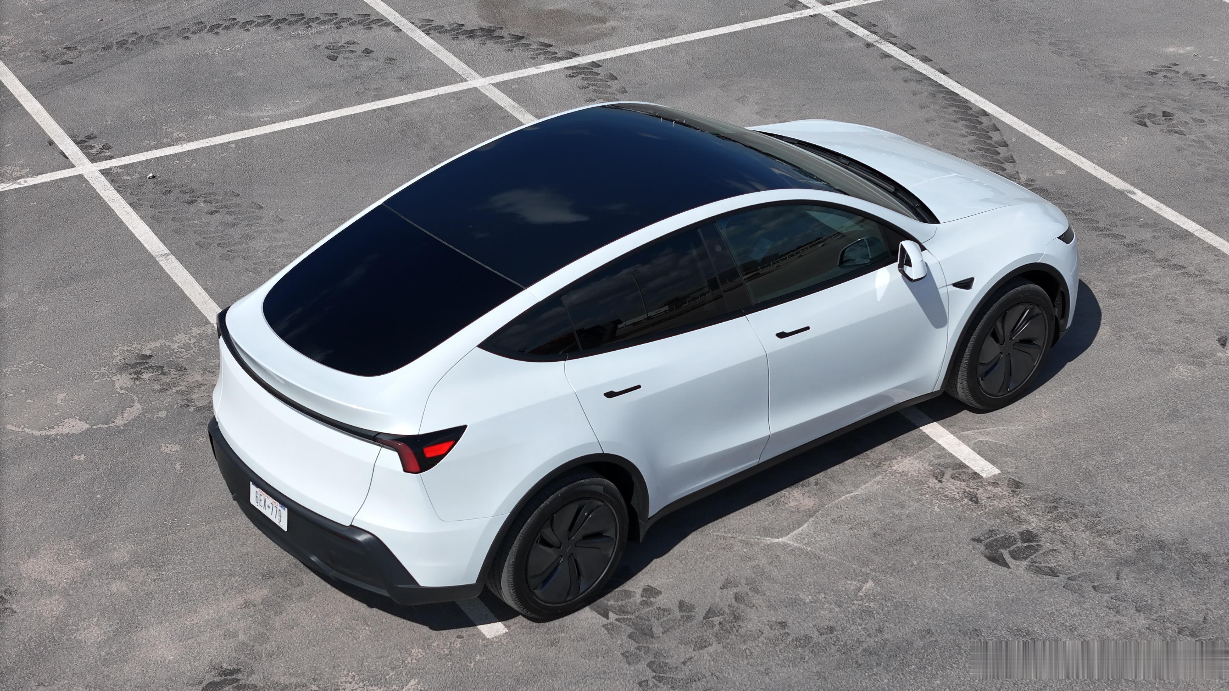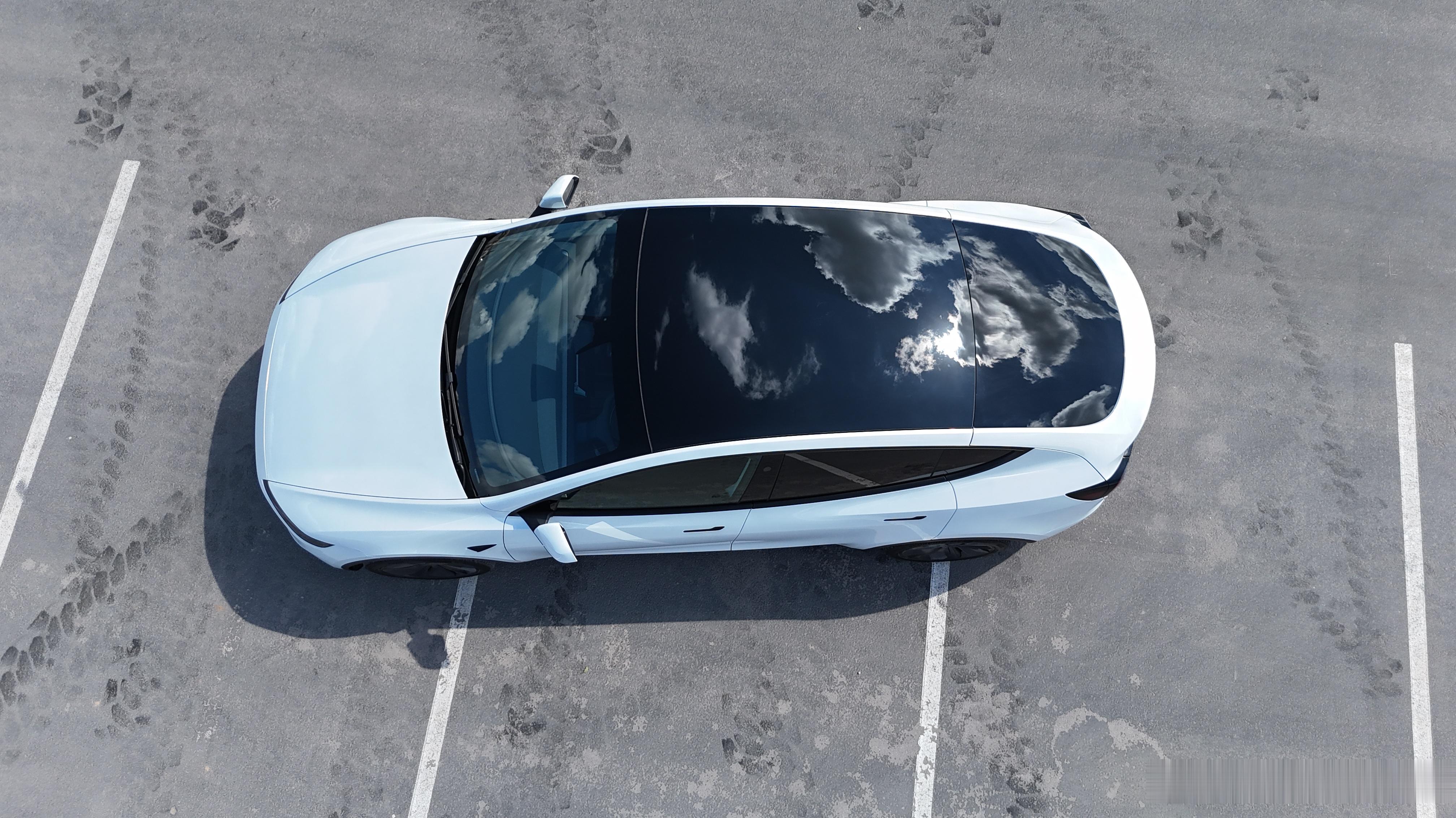 Model Y标准版俯视图,官方称这个是Closed glass roof,封闭式玻璃顶棚