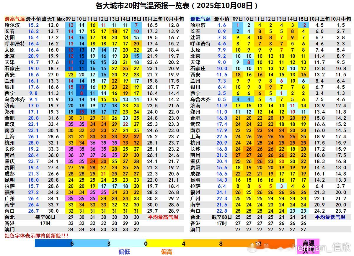 北方地区在冷空气和阴雨影响下,未来2天气温依然普遍偏低。尤其是明天,东北和华北多地最高气温将创立秋后新低,并且华北一带,最高气温比常年10月上旬偏低10-12℃,同期少见甚至破纪录,北京报12℃、天津报11℃、石家庄报11℃。因为北方冷高压和南方副热带高压,都偏强,导致气温大幅偏离正常值,给人错乱感。