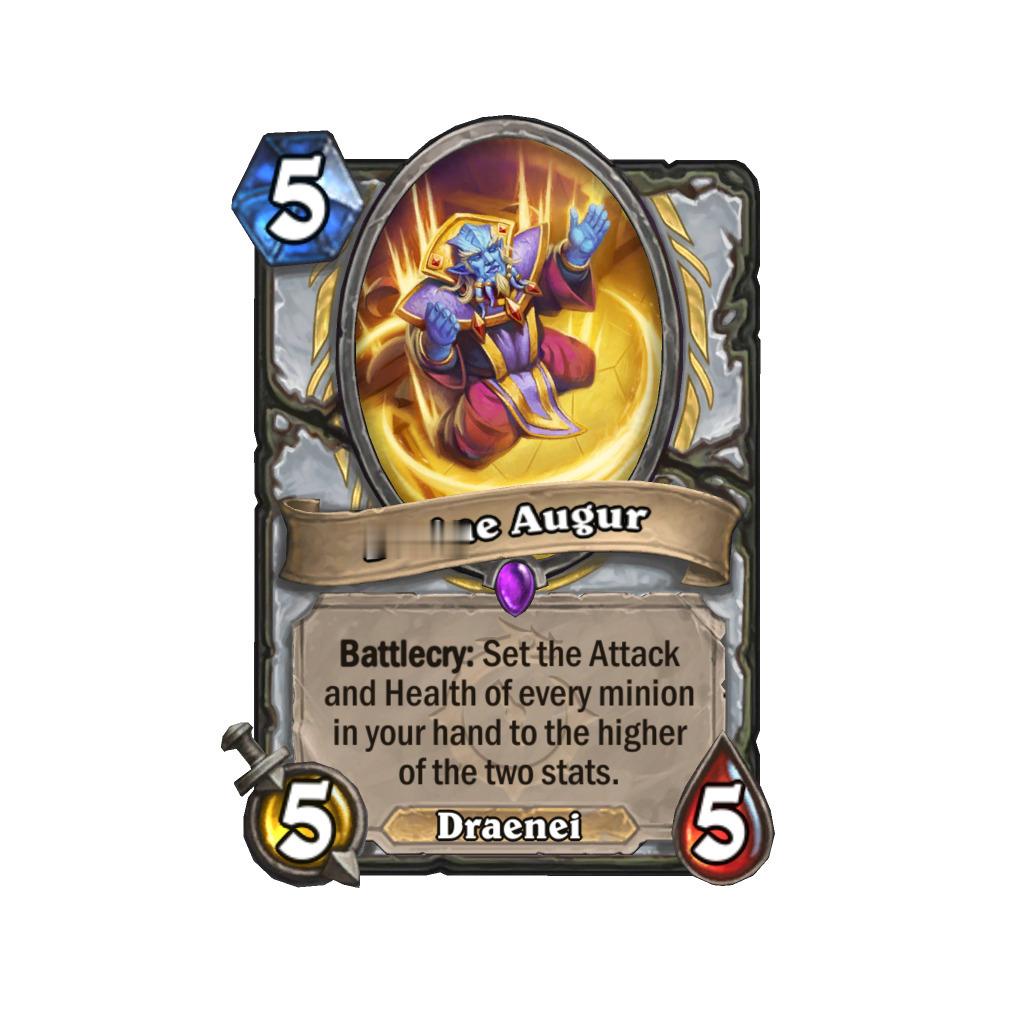 战吼:将你手牌中的每张随从牌的攻击力和生命值变为两者中的高值。