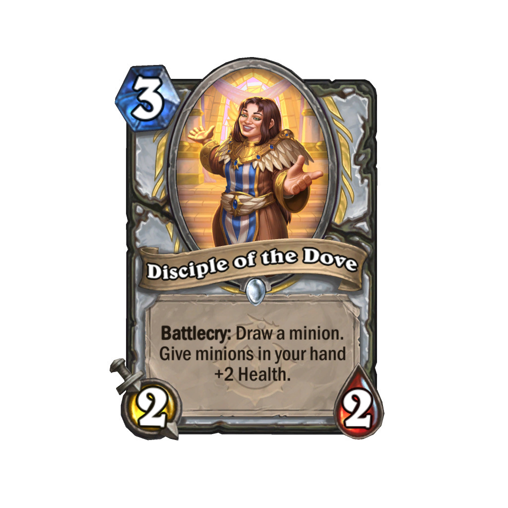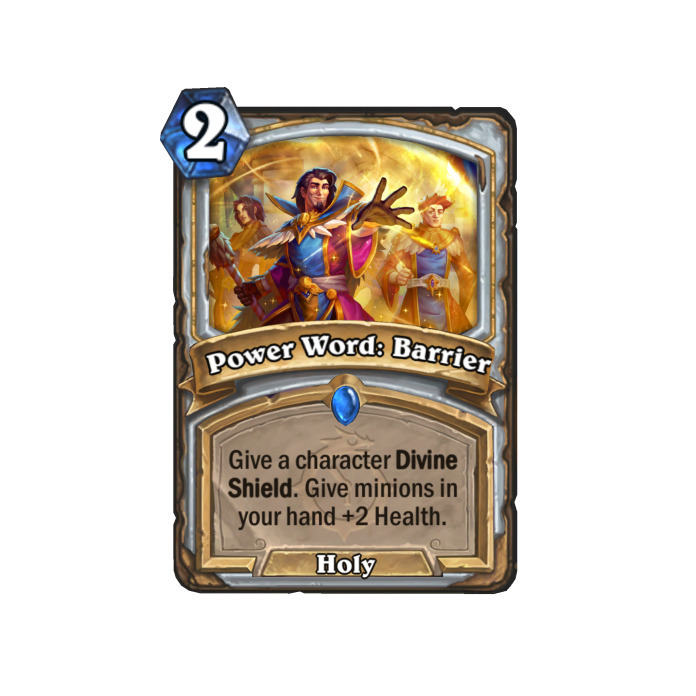 使一个角色获得圣盾。使你手牌中的随从牌获得+2生命值。