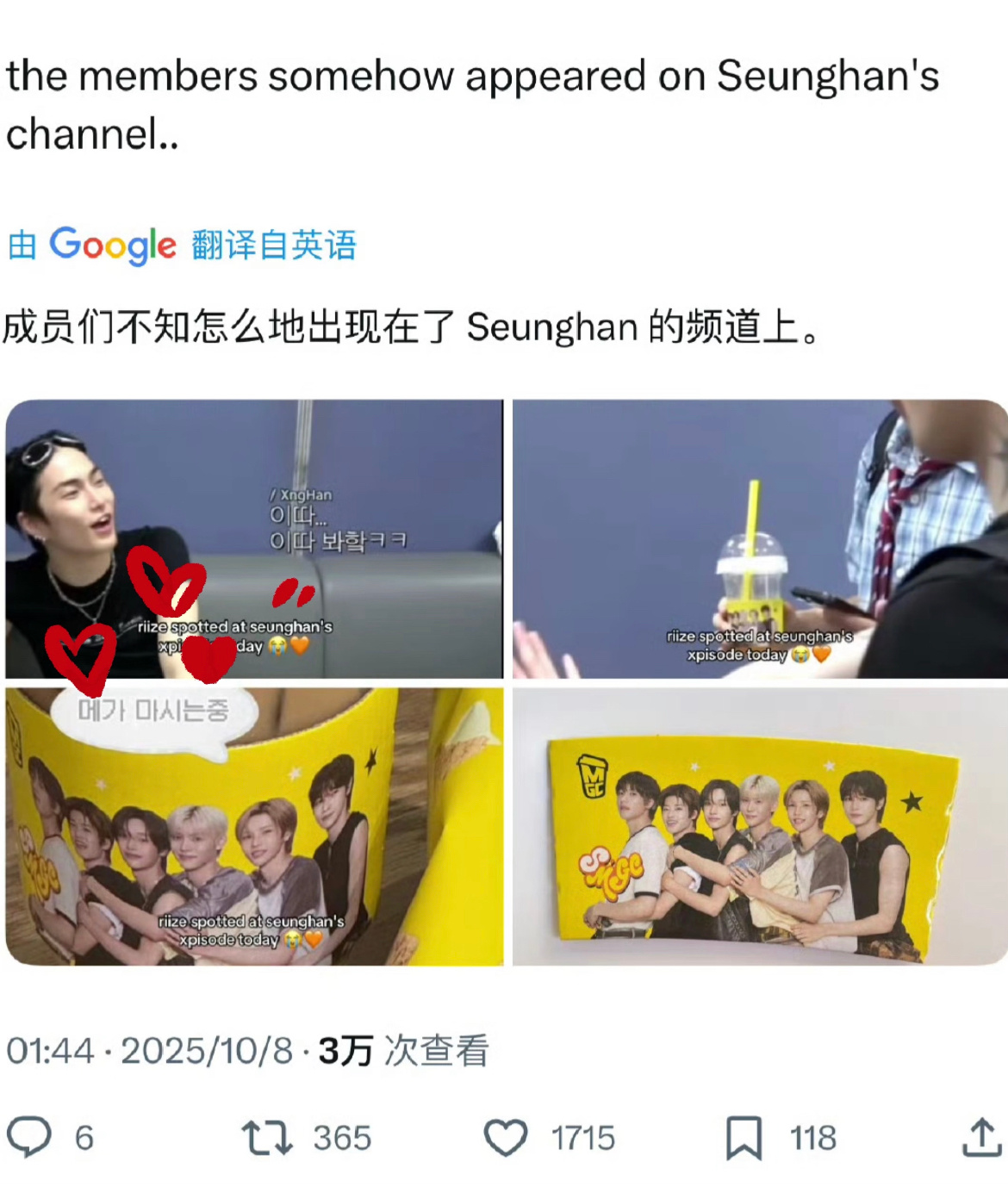 RIIZE不知怎么的出现在了洪承汉的频道上