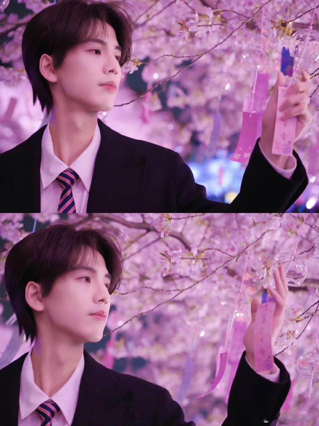 樱花树下的少年!张凌赫愿你越来越好😘张凌赫真的很像漫画里走出来的少年呀