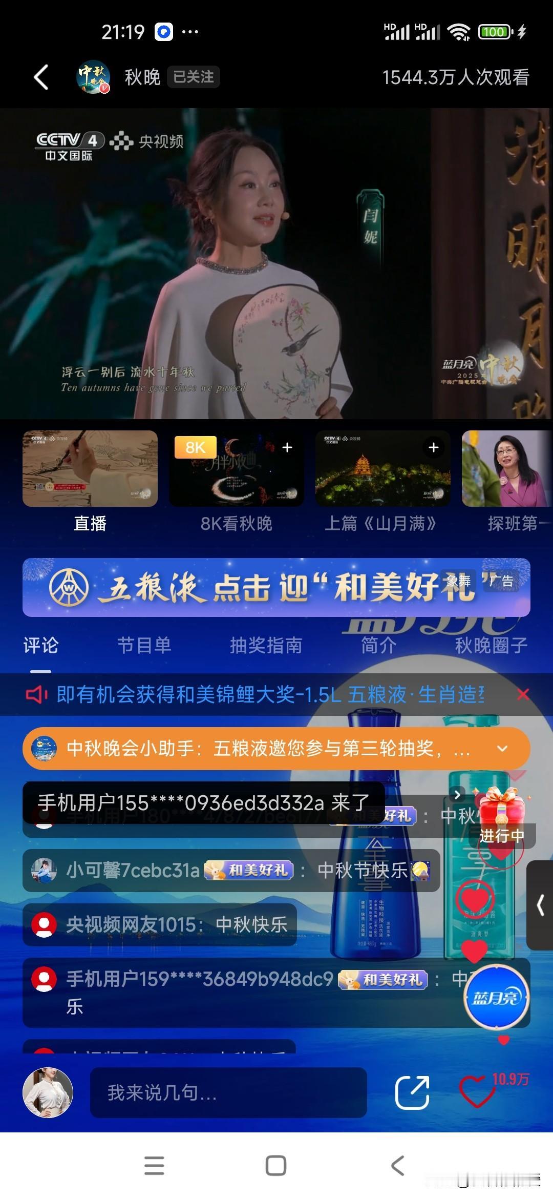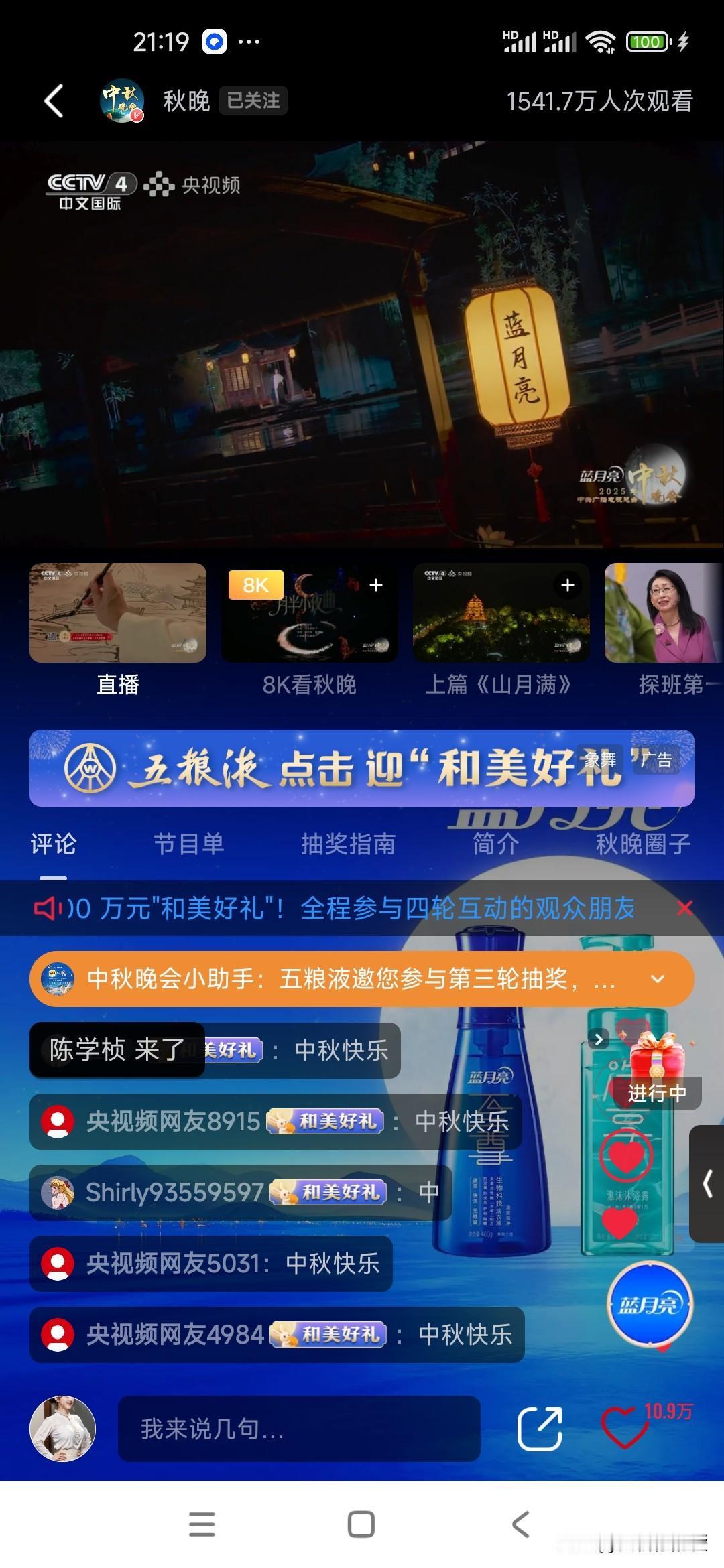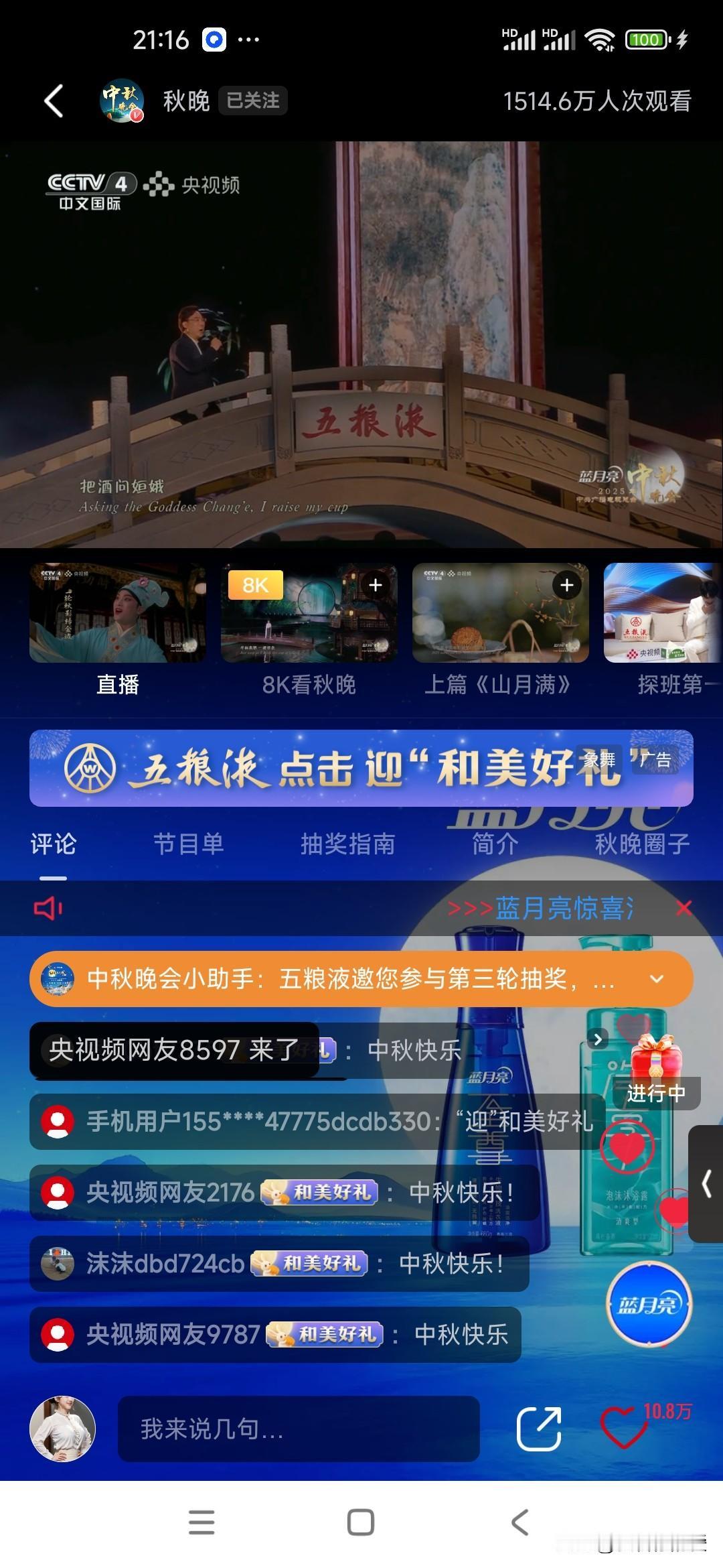 中秋佳节,团圆的氛围愈发浓厚。《2025 年中央广播电视总台中秋晚会》在四川德阳玄珠湖摆起团圆宴,这里古蜀文明与现代工业交织,舞台以蜀道为引、明月为核,营造出“月从蜀道升,人向镜中圆”的绝美意境。 而五粮液作为总台中秋晚会“和美好礼”互动合作伙伴,携手央视频,带来总价值超 5000 万元的“和美好礼”。边看中秋晚会边有机会赢好礼,这谁能不心动?大家可以上央视频,边感受中秋晚会的精彩,边期待好运降临,说不定丰厚大礼就砸到自己头上啦!