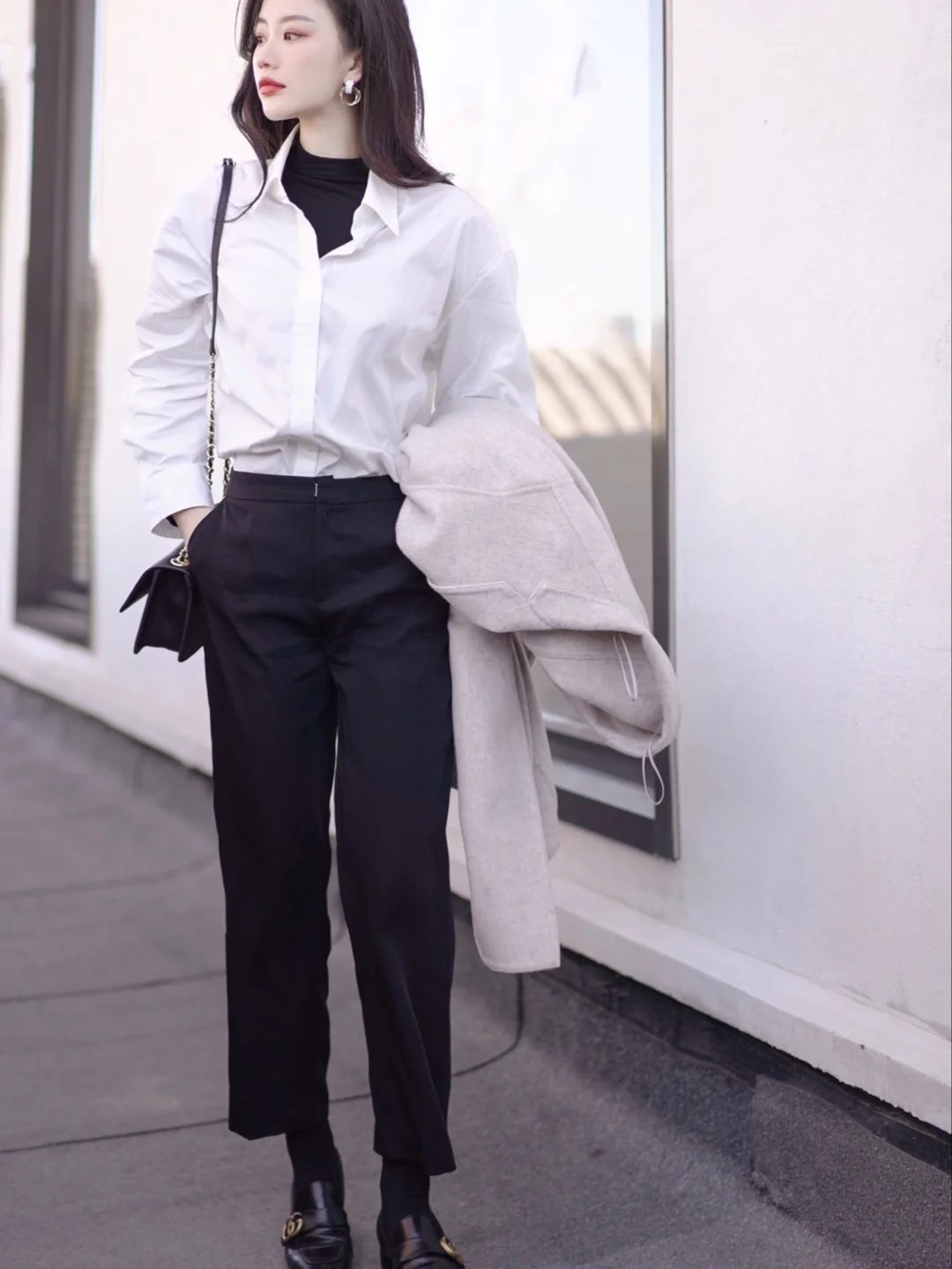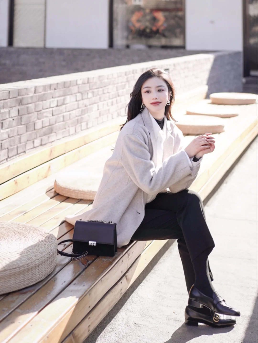 🚩在粗方跟踝靴和乐福鞋之间还是纠结了一会儿的,最后选择了乐福鞋,休闲感让整体风格更偏舒适和柔和,平衡了黑白灰色调那种煞有介事的冷静之感。